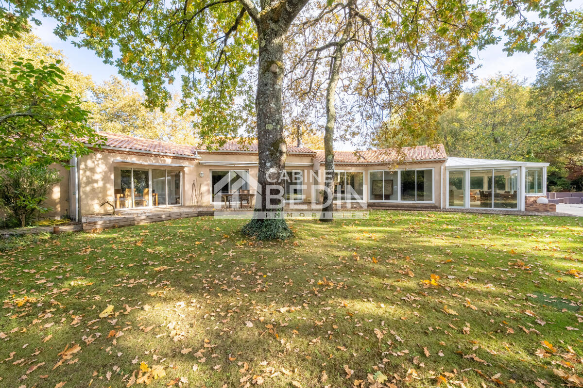 Exclusivité CABINET BEDIN - CESTAS RÉJOUIT havre de paix et lumière naturelle. Nichée sur un magnifique terrain paysager de plus de 3000 m², au calme absolu et sans aucun vis-à-vis, cette superbe propriété de plain-pied de 250 m² habitables vous séduira par so...