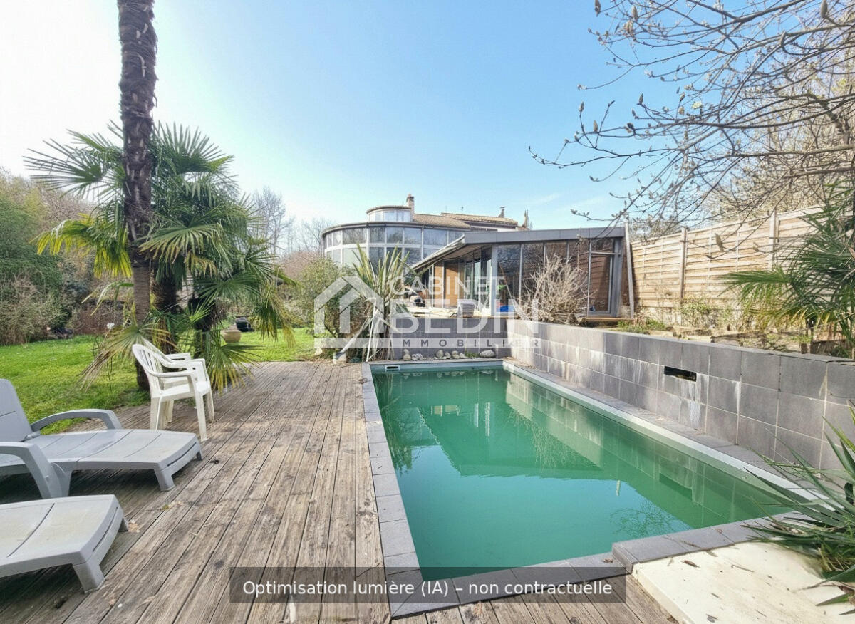 CAMBLANES ET MEYNAC. Située dans un environnement résidentiel et verdoyant, cette maison de plain-pied offre 4 chambres et un bureau. Elle séduit par sa luminosité, sa fonctionnalité, sa grande véranda, son garage double, son atelier, sa cave et son jardin san...
