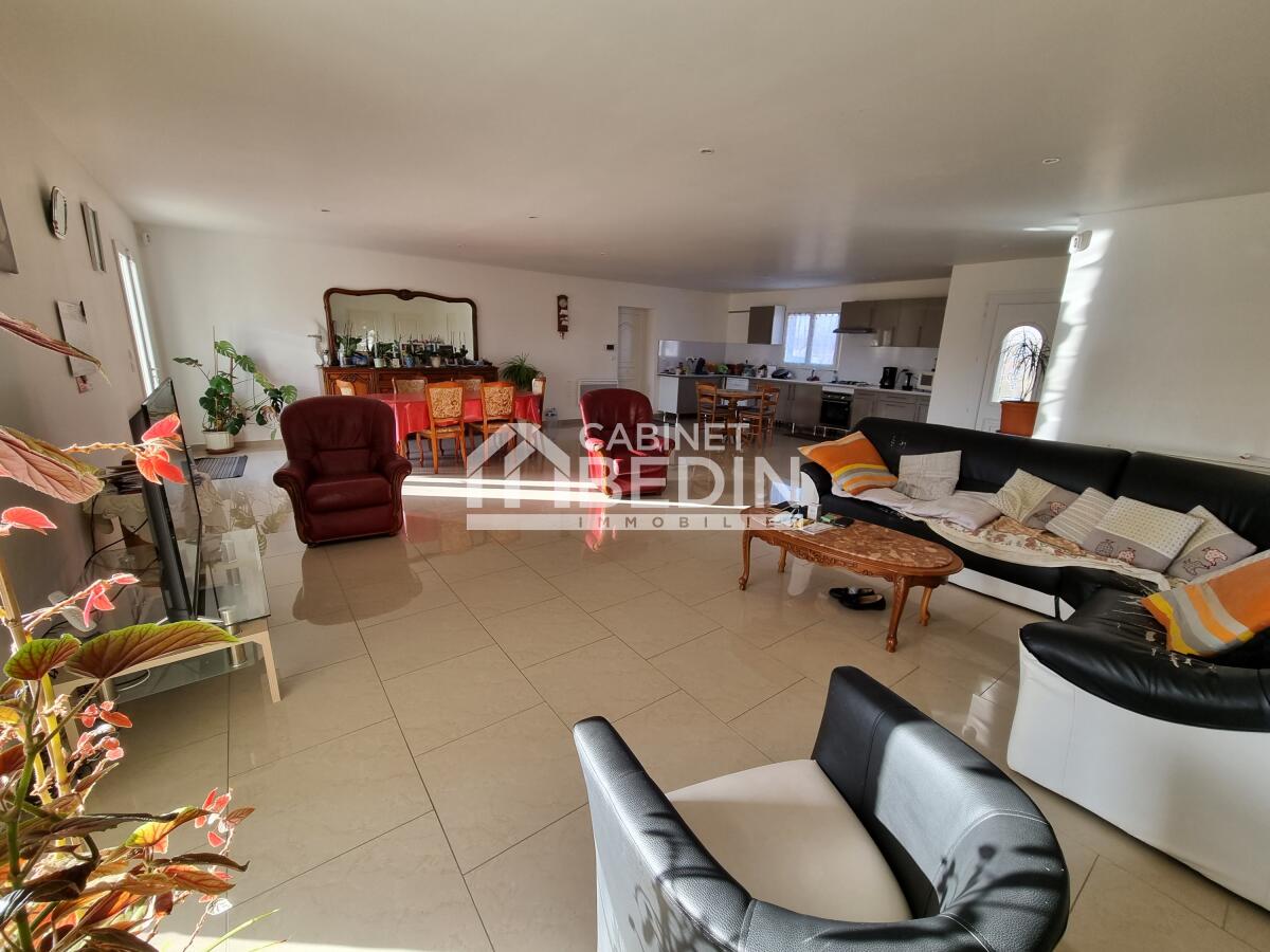 Exclusivité CABINET BEDIN - PROCHE ST ANDRE DE CUBZAC. Au coeur du village, proche des commerces, venez découvrir cette lumineuse maison contemporaine de plain-pied comprenant une belle pièce de vie, une cuisine aménagée bien équipée avec son cellier attenant,...