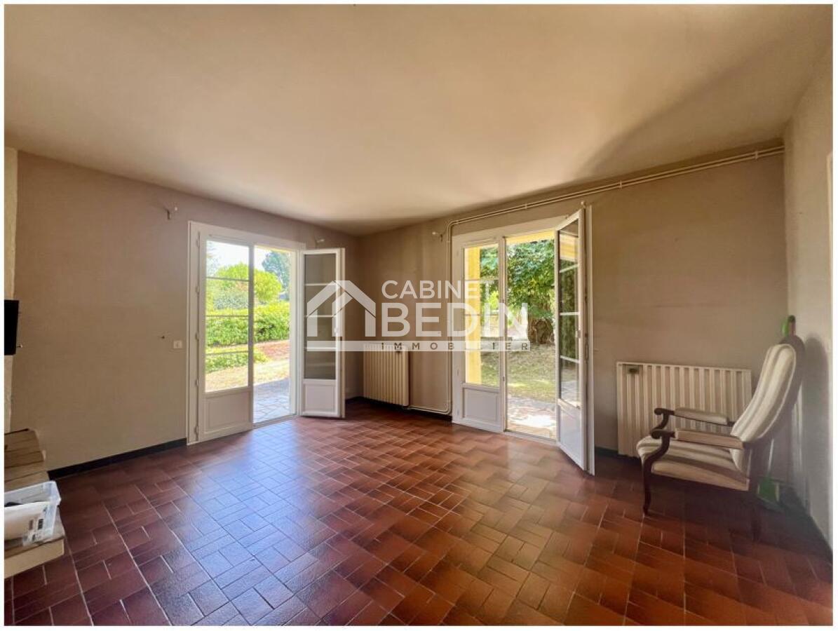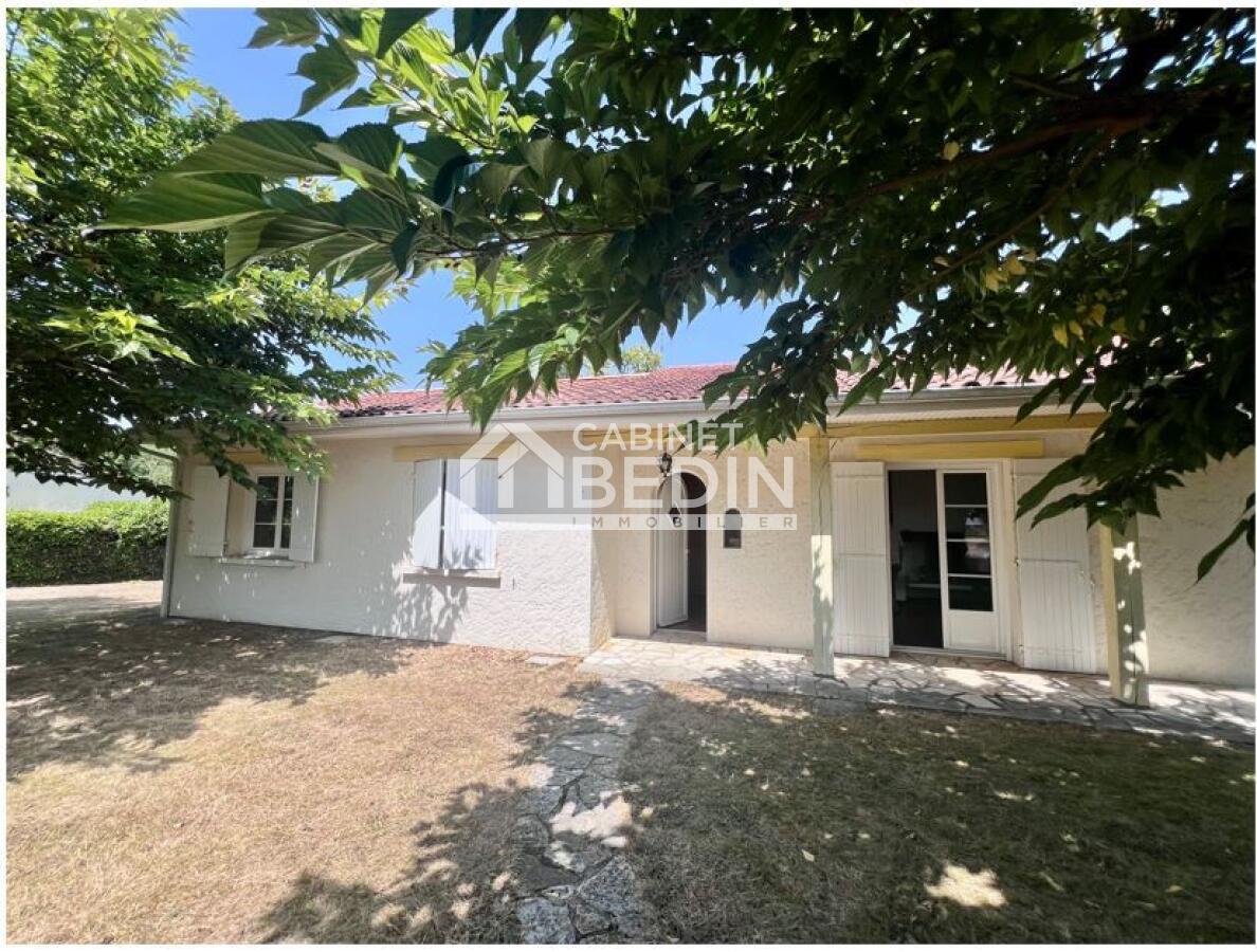 BEYCHAC ET CAILLEAU. Proche du Golf de Beychac-et-cailleau, dans un environnement calme et recherché. <BR>Jolie maison de plain-pied comprenant de beaux volumes. <BR>Elle se compose d'une entrée, séjour avec sa cuisine ouverte, 3 chambres, sal...