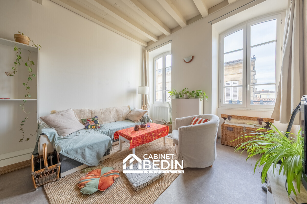 Exclusivité CABINET BEDIN - Bordeaux Saint Michel : Appartement dernier étage. Situé au c?ur du centre historique de Bordeaux, au 3eme étage d?un charmant immeuble en pierre, cet appartement bénéficie d?un environnement calme et résidentiel, particulièrement r...