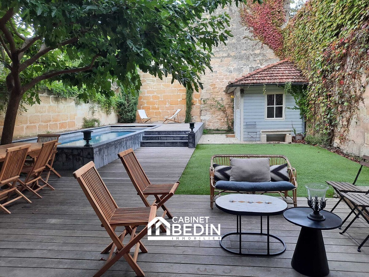 Superbe maison de maître coeur de Saint Genès. Derrière sa jolie façade se dévoile une maison où règne une atmosphère douce et chaleureuse. <BR>Au rez de chaussée, une entrée dessert une chambre de plain pied et sa salle d'eau privative. La cuisine,...
