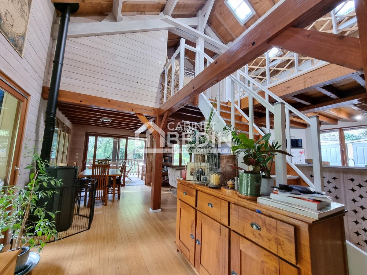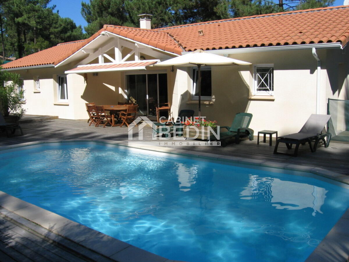 MAISON AVEC PISCINE BISCARROSSE PLAGE. À seulement 800 m de l?océan, nichée dans un quartier calme en bordure de forêt, cette superbe maison vous offre un cadre de vie exceptionnel entre nature et confort. <BR>D?une superficie généreuse, elle se compose ...