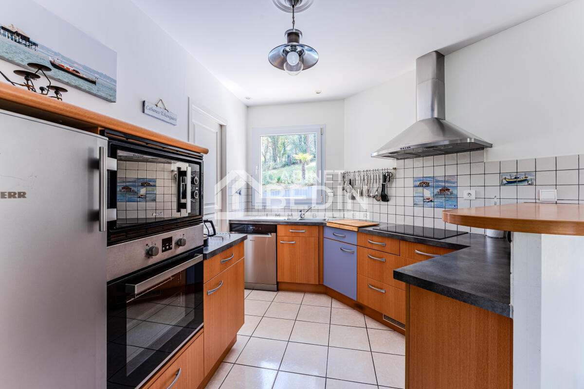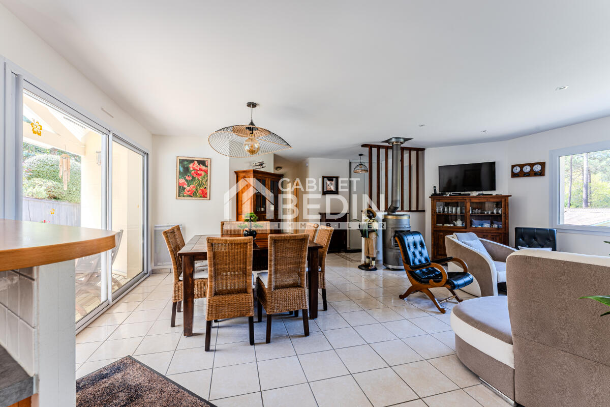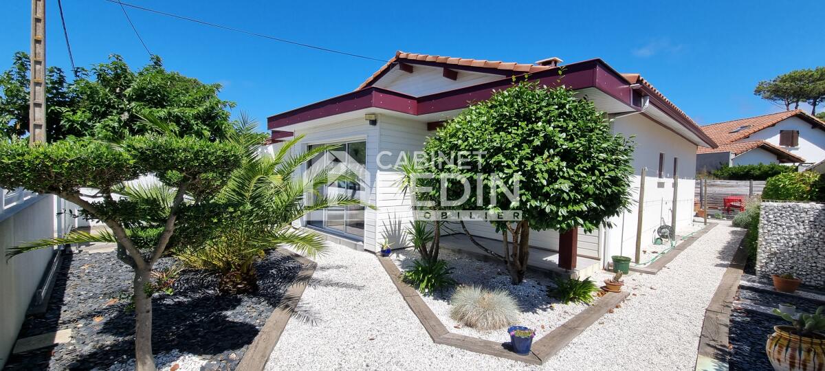 BISCARROSSE PLAGE. Maison de plain-pied d?environ 113m². Cette maison se compose de quatre chambres, d?un salon spacieux ouvert sur le jardin, d?une grande cuisine équipée donnant directement sur l?extérieur, d?une arrière-cuisine, d?une buanderie et d?un cell...