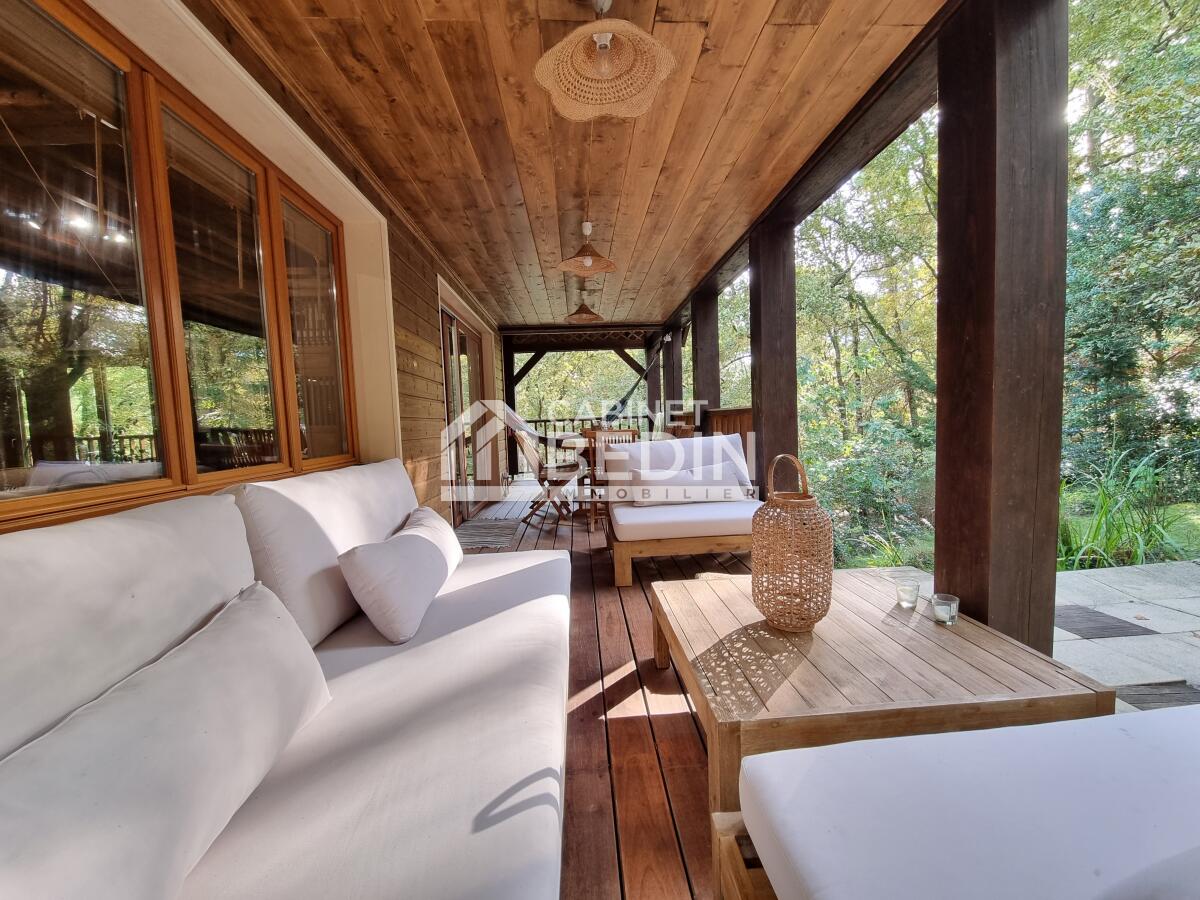 GOLF DE BISCARROSSE. 'La Cabane Tchanquée' au Golf de Biscarrosse ! <BR>Cette maison en bois sur pilotis porte bien son nom. Découvrez cette maison construite en 2004, d'environ 137m² habitables. Elle dispose d'une belle terrasse couv...