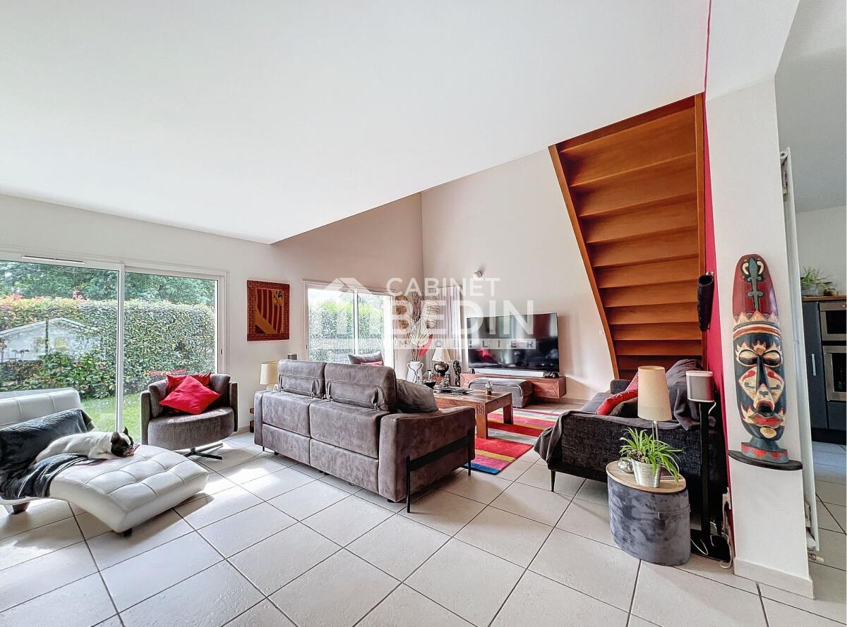 Maison à St Médard d'Eyrans. Située dans un environnement privilégié, cette belle maison de 5 pièces séduit par ses volumes bien pensés et sa luminosité. <BR>Le rez-de-chaussée se compose d?un agréable séjour avec cuisine ouverte, de trois chambres ...