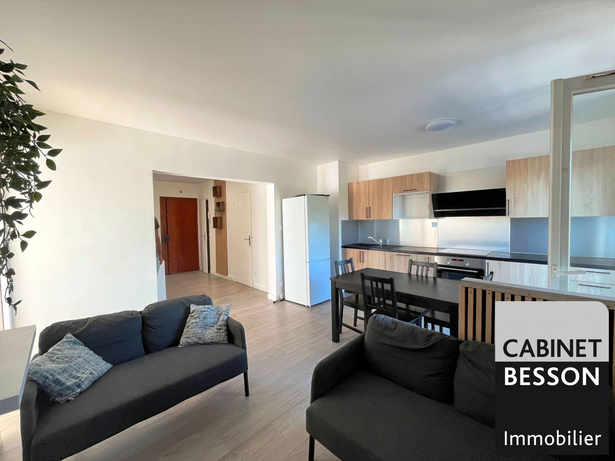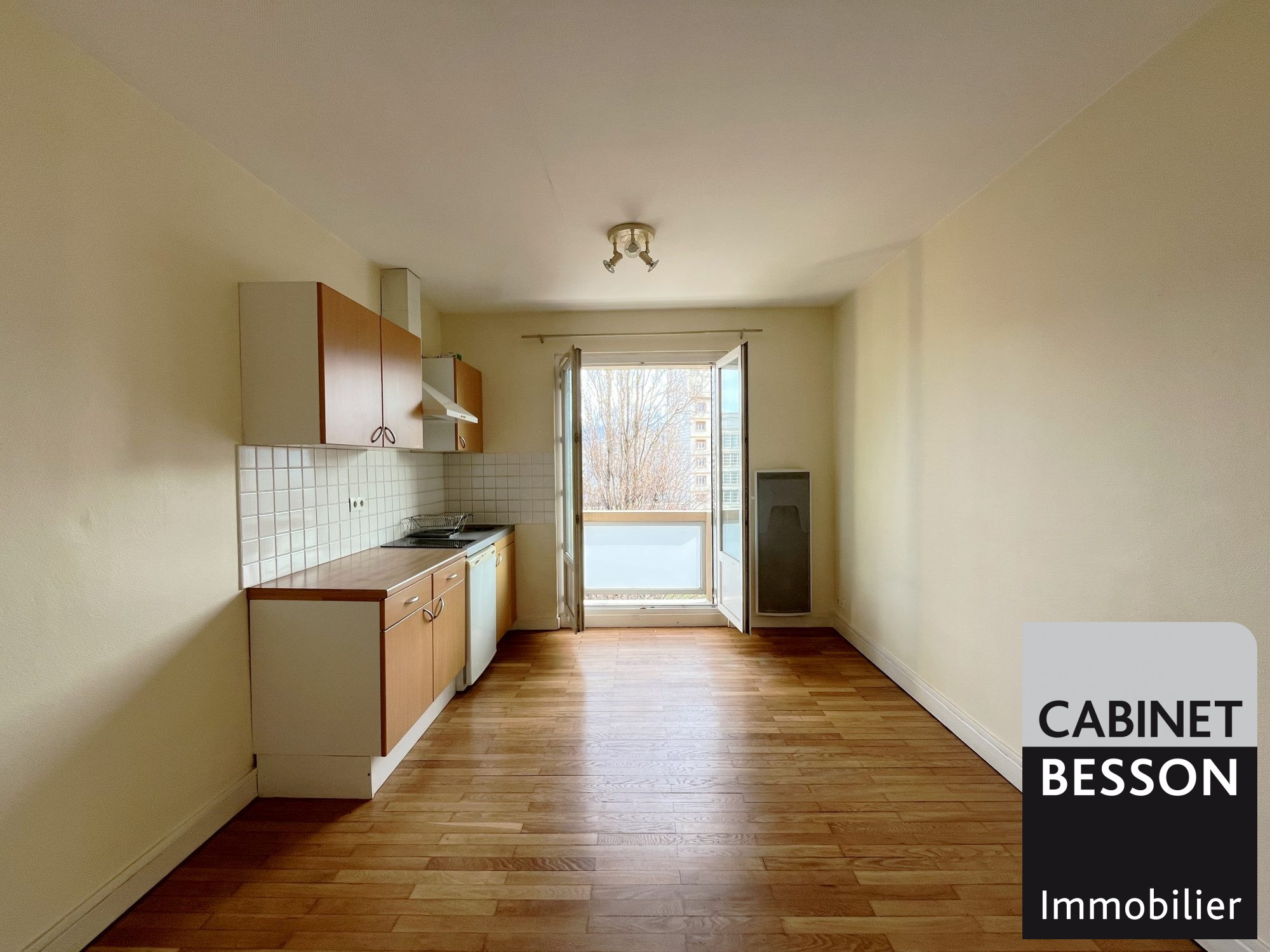 Un séjour de 20m² exposé Sud, deux chambres, une grande cuisine, salle de bains et WC.
