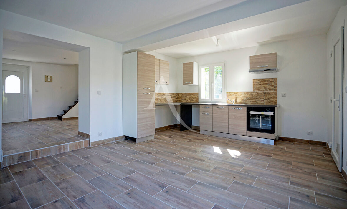 Salon-séjour, cuisine aménagée et équipée, wc.