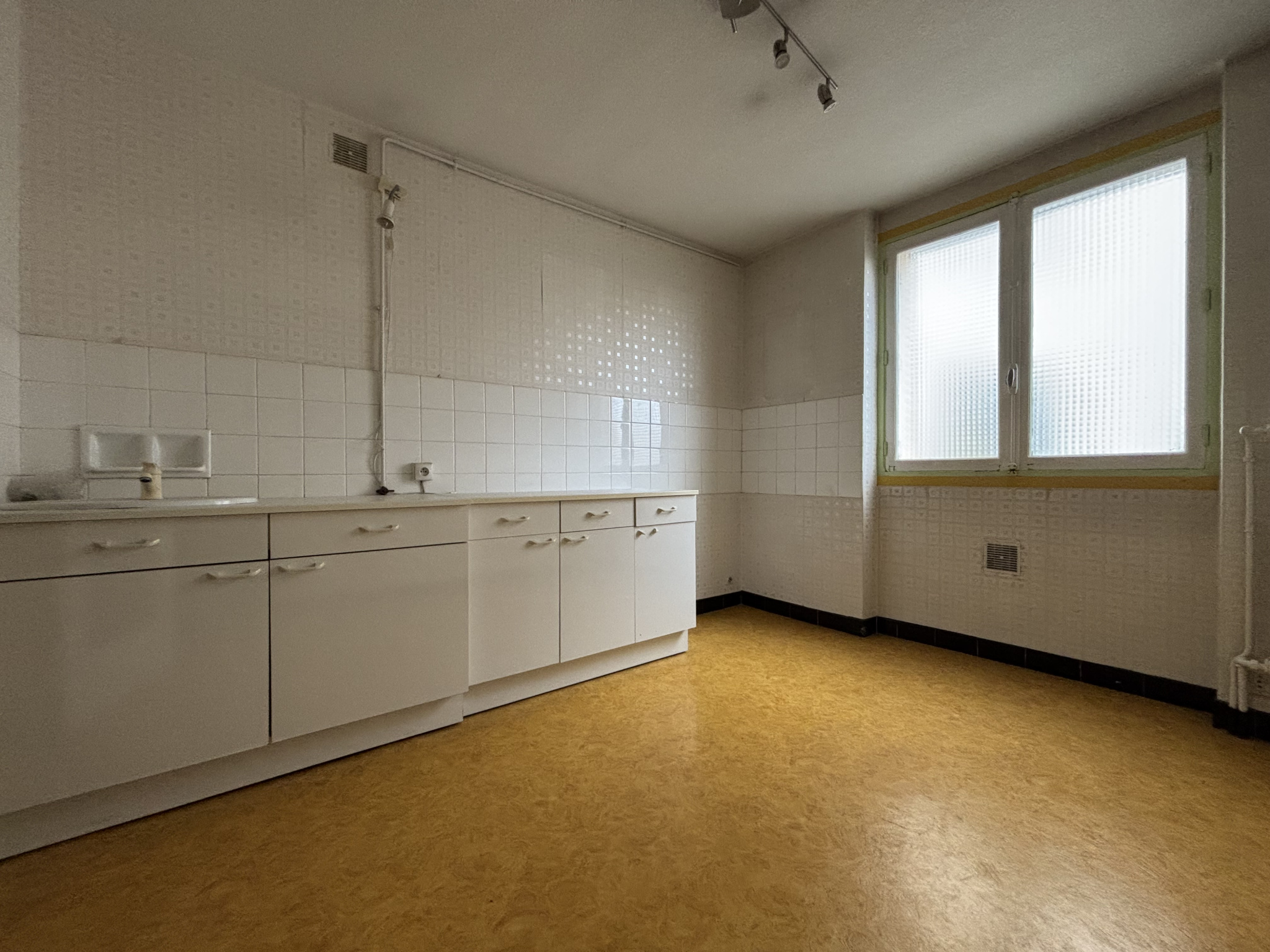 Grand T4 99 m2 comprenant cuisine équipée, séjour ouvrant sur balcon, 3 chambres, 1 salle de bains et 1 wc.
