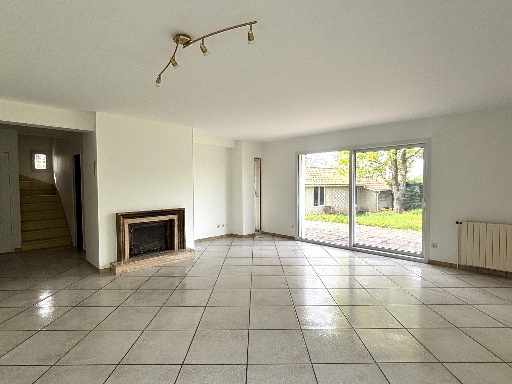 Au rez-de-chaussée : un salon-séjour lumineux avec cheminée...