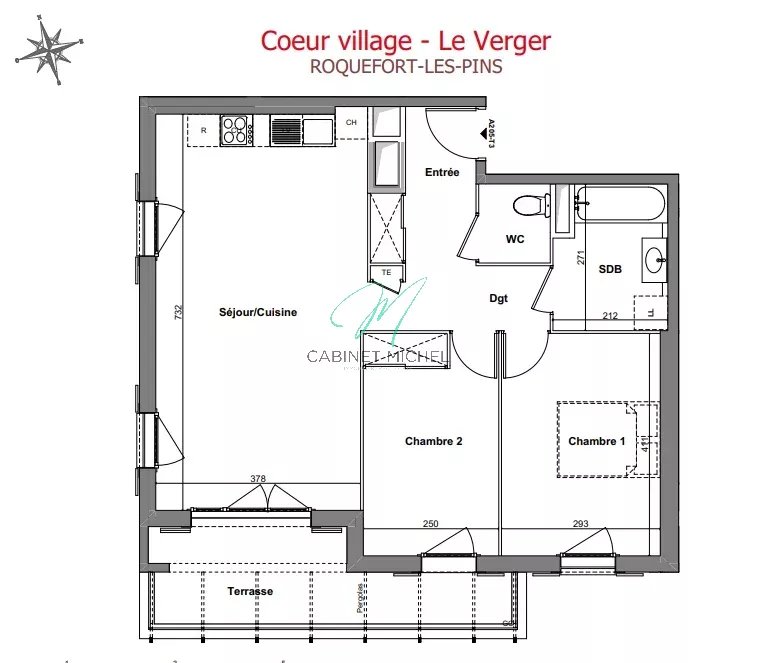 Au cœur du village, au sein d'un programme, baptisé "Cœur village-Le Verger" situé au 2 ème étage, appartement de type 3 pièces de 71.54 m² se composant : d'une entrée, un séjour avec cuisine ouverte (livré sans cuisine), ouvrant sur terras...