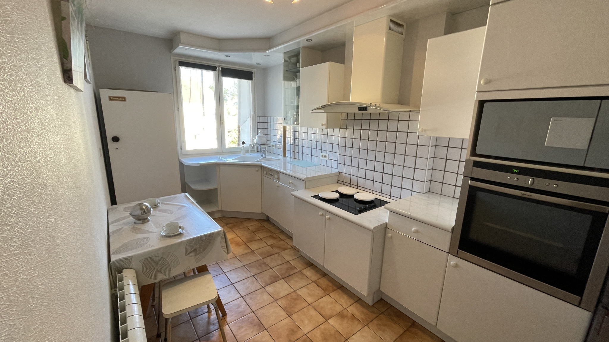 11493 - Résidence du Lac, en rez-de-chaussée surélevé, appartement entièrement rénové de type 3 avec balcon et loggia exposés Sud Ouest composé : grande entrée avec placard vestiaire, cuisine ouverte aménagée et entièrement équipée ouvert la salle à manger et ...