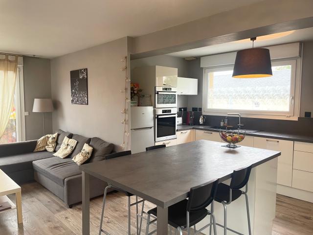 Exclusivité 3P, dans une résidence récente, charges maitrisées, comprenant: entrée, cuisine aménagée et équipée, séjour donnant sur balcon de 10.30 m² exposé OUEST, deux chambres dont une avec placard, salle de bain.