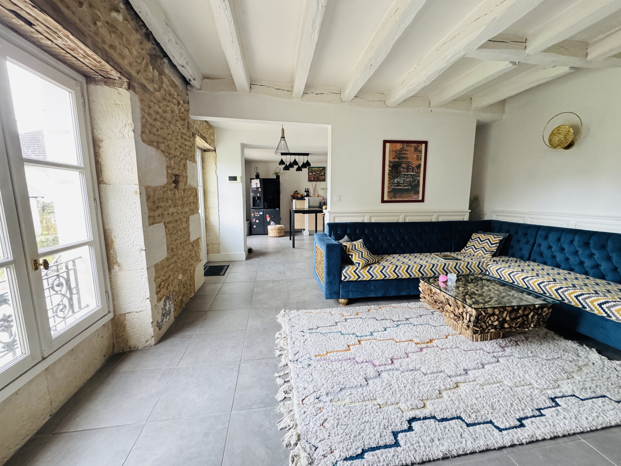 Quartier Promenade des Cours, un air de campagne... charmante maison de 267m2 hab comprenant au rez-de-chaussée : entrée, salon, séjour avec cheminée, cuisine aménagée, arrière cuisine, salle d'eau avec wc.