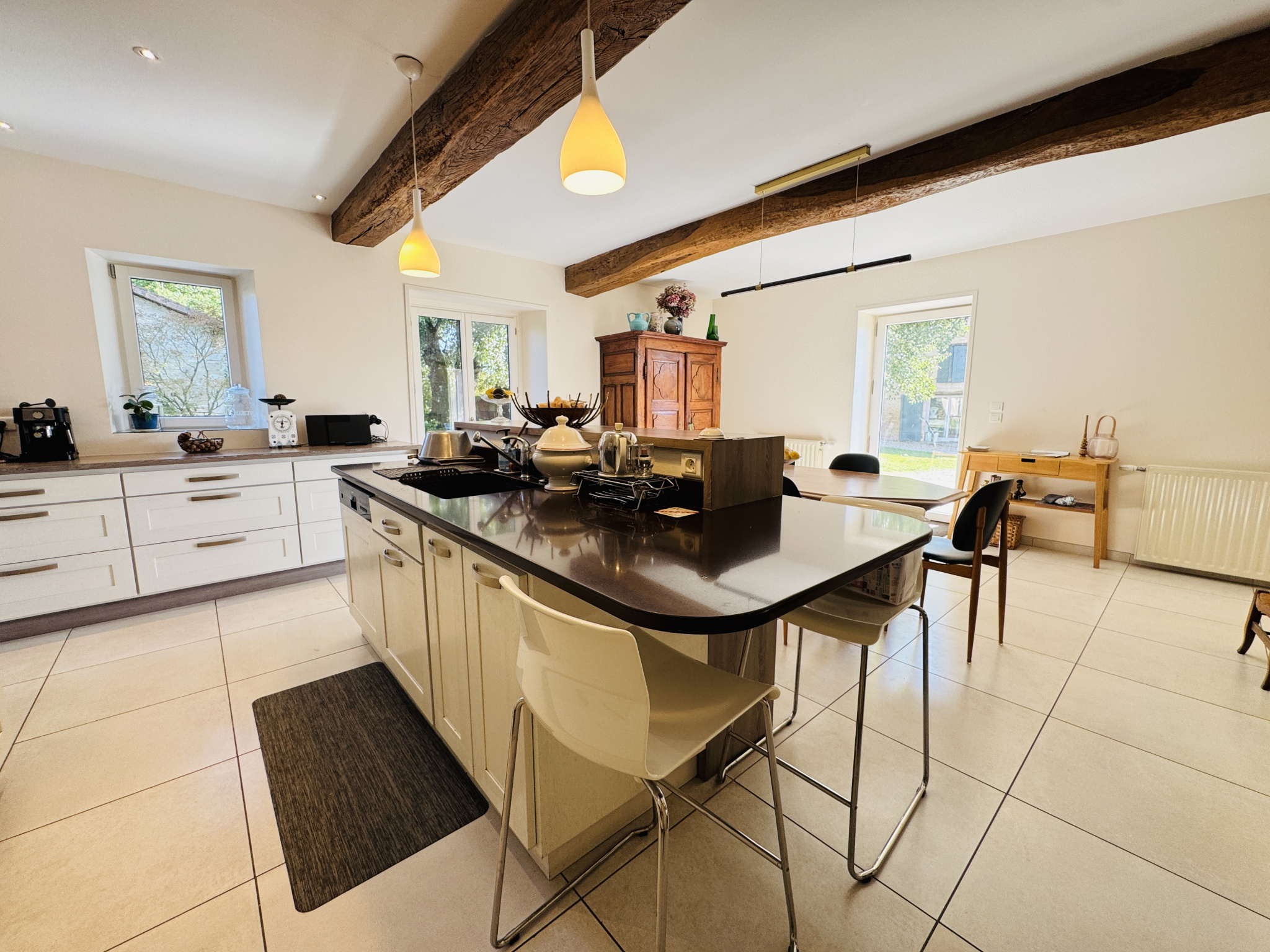 La maison principale comprend au rez de chaussée: salon avec cheminée à double foyer, cuisine ouverte sur salle à man...