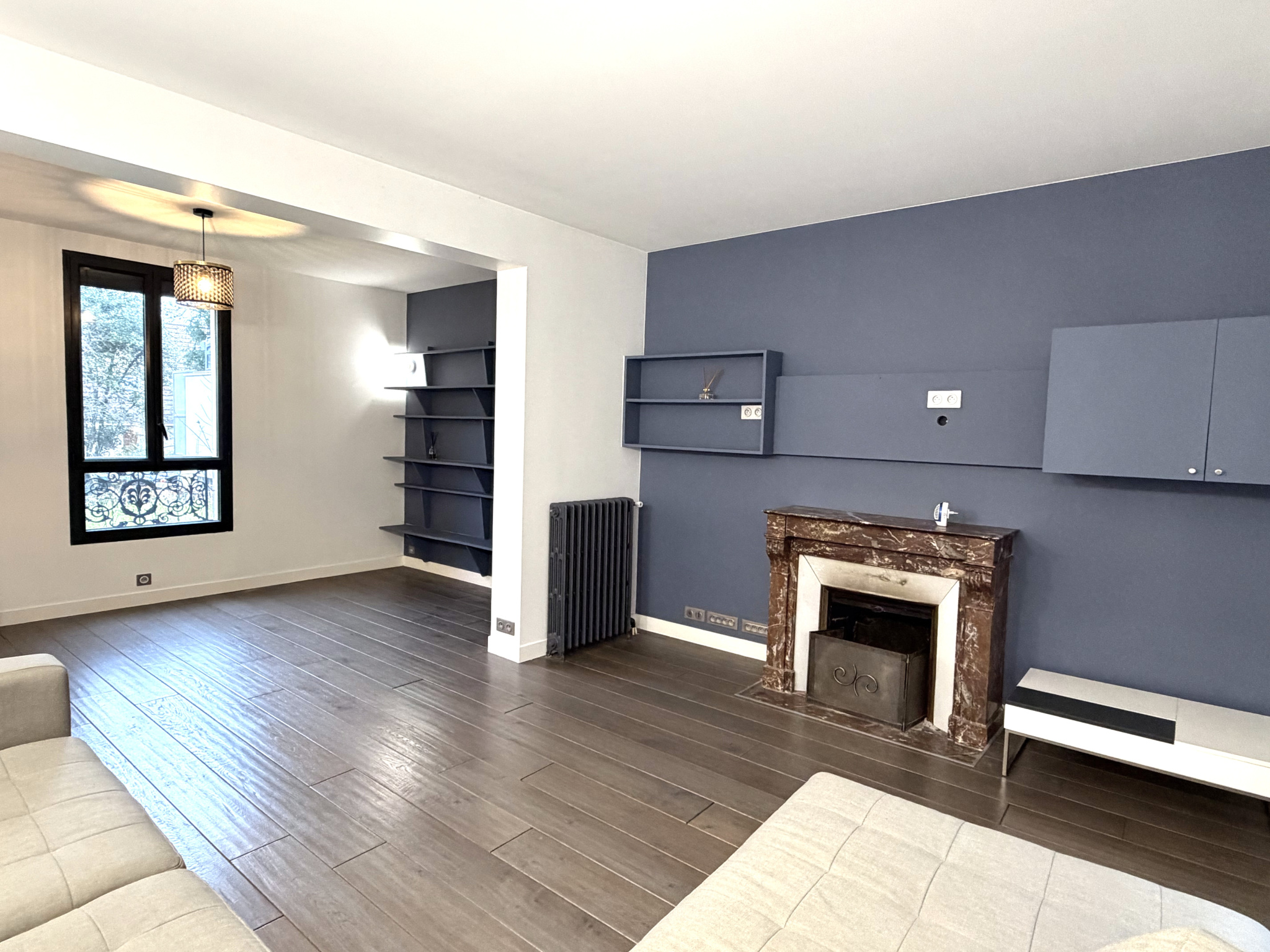 ANTONY EN CENTRE-VILLE, DANS UNE PETITE COPROPRIETE DE 1990, AU 1er ETAGE AVEC ASCENSEUR, BEL APPARTEMENT TRAVERSANT REFAIT A NEUF DE 70 m2, comprenant : entrée, séjour, cuisine semi-aménagée,deux chambres sur cour avec rangements, salle de bains avec toilette...