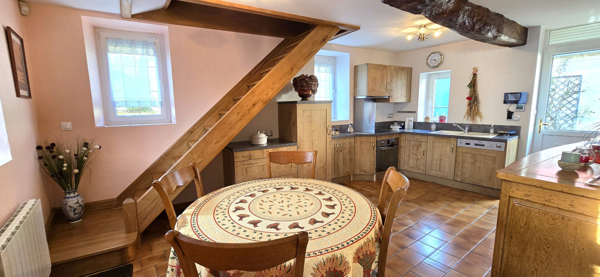 Dès l'entrée, vous découvrirez une cuisine aménagée et entièrement équipée, pensée comme un véritable espace de vie avec coin rep...