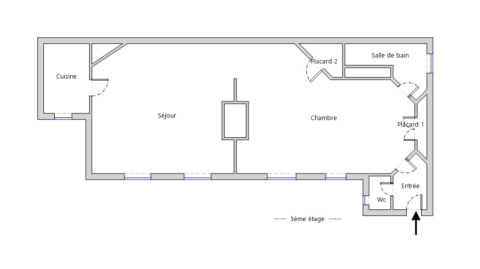 Rue Marguerite de Rochechouart - 2 p 53.80m² au 5éme étage sans ascenseur dans bel immeuble Hausmannien avec charme de l'ancien parquet / moulure et cheminée au 5éme sans ascenseur avec un plan inversé comprenant une entrée - une chambre avec salle de b...