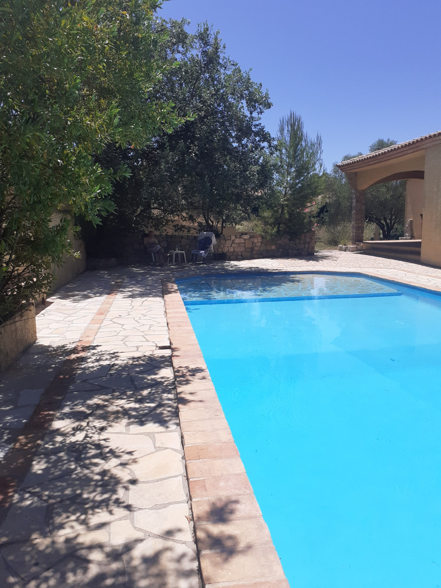 A vendre à moins de 5mn de GIGNAC, dans le ravissant village de POUZOLS - Nichée en fond d'impasse en limite de zone constructible et édifiée sur une grande parcelle de 1357m2 avec piscine : Grande villa traditionnelle de plain-pied de type 5 d'envir...