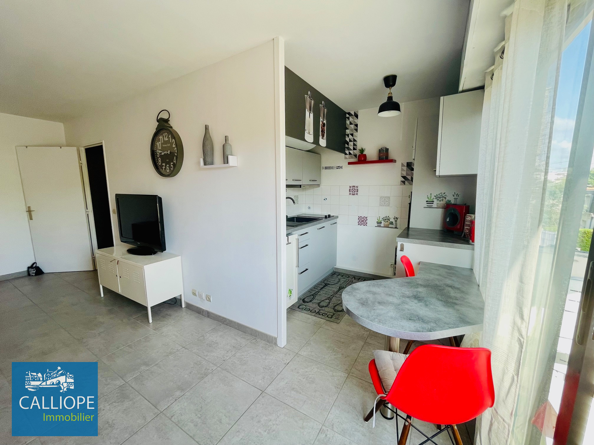 Au 1er étage, Salon, SAM et cuisine US équipée, 1 belle chambre de 15 m2 avec placard, une salle de bains et wc. Balcons avec stores banne.