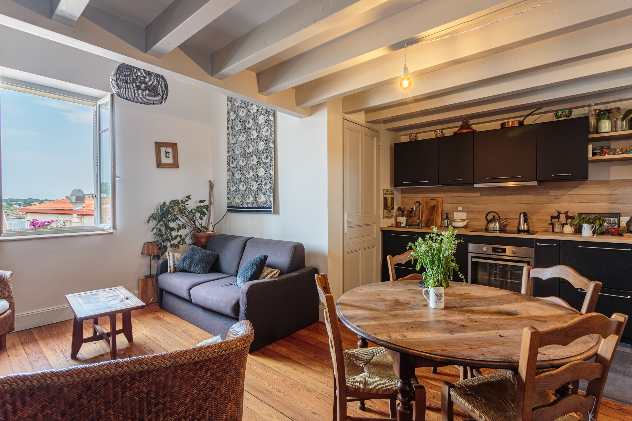 Belle oppotunité à saisir au centre de Sare, dans un ensemble immobilier entièrement rénové en 2018.