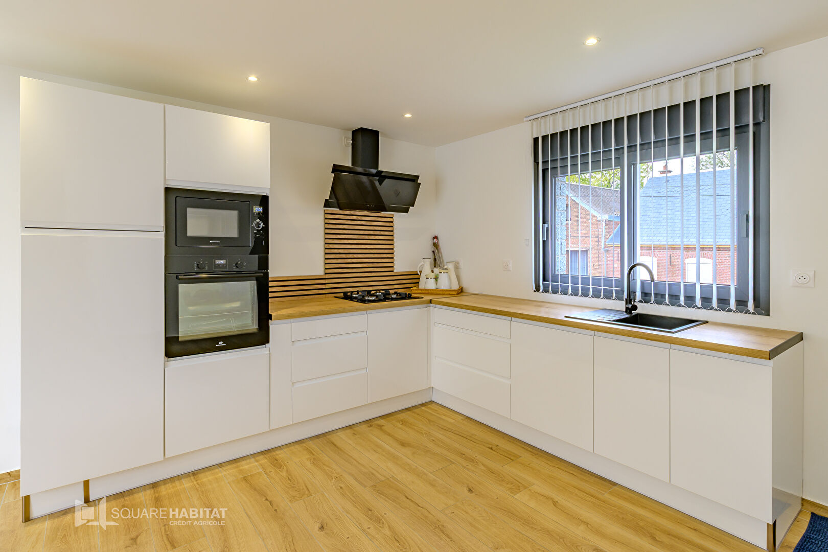Maison proche du centre-ville dans une rue calme de Caudry avec stationnement facile, qui offre au rez-de-chaussée une belle pièce de vie lumineuse avec cuisine ouverte.