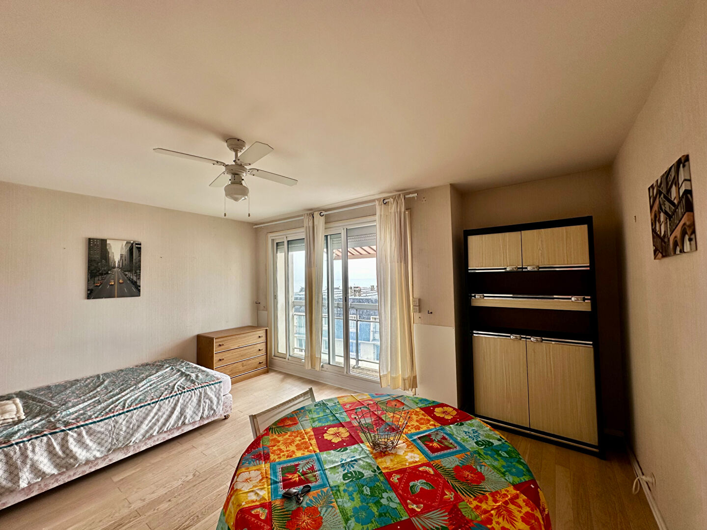Emplacement idéal pour cet appartement en très bon état comprenant deux chambres, une kitchenette ouverte sur salon, une salle de bain (baignoire) et WC. Il se situe proche des transports et de toutes commodités. Faibles charges. Contact : Corinne LE LEANNEC