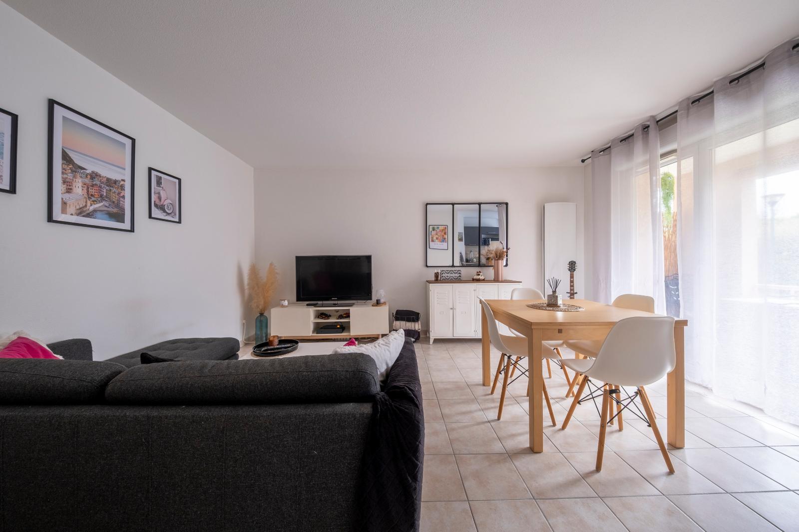 L'appartement se compose d'une pièce de vie lumineuse...