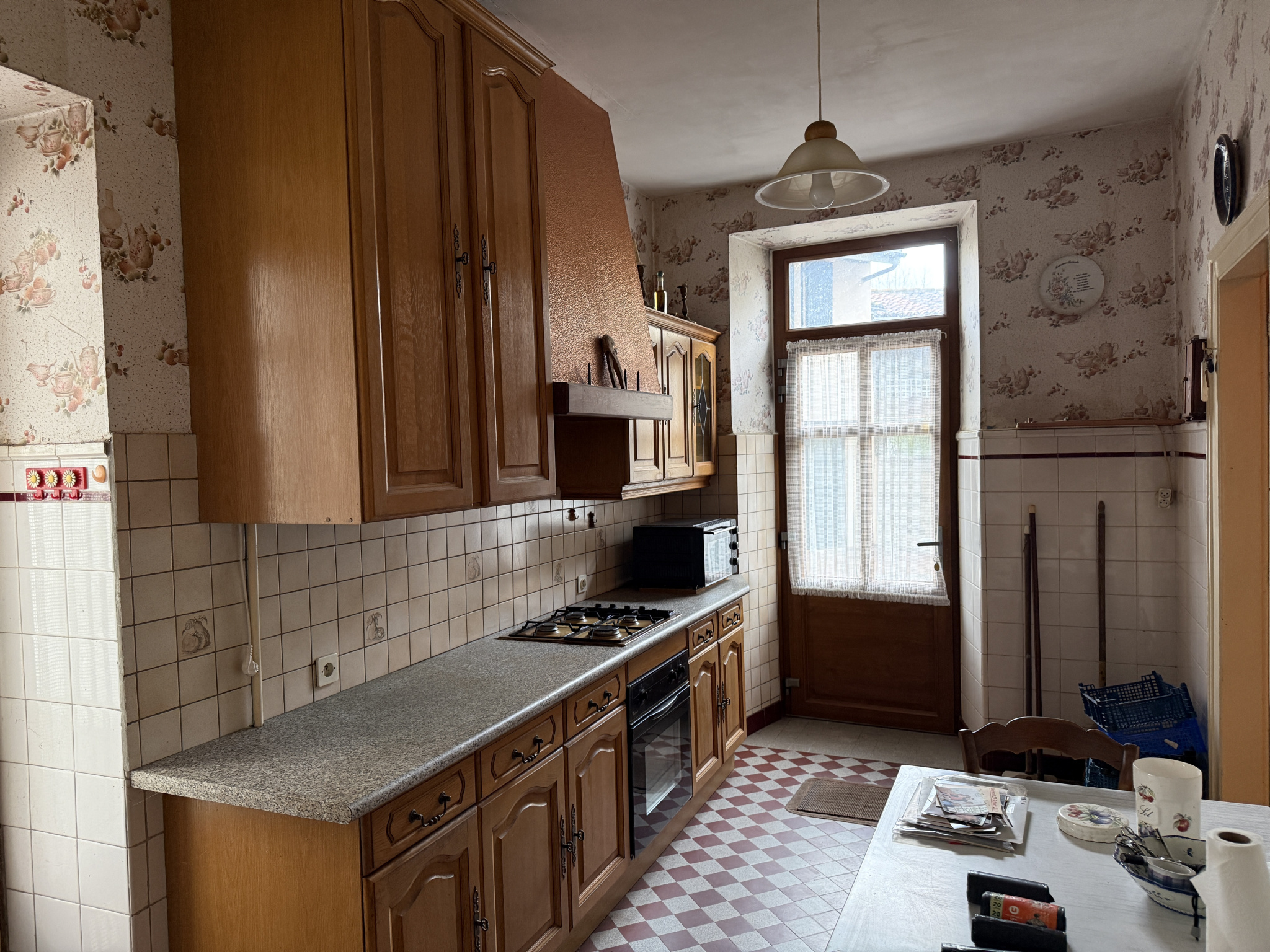 Proche de toutes les commodités, Maison de village T3 d'environ 80 m2 habitables comprenant une double entrée, une pièce à vivre avec cuisine us partiellement aménagée et équipée, un espace rangement sous l'escalier, deux chambres avec parquet au sol...