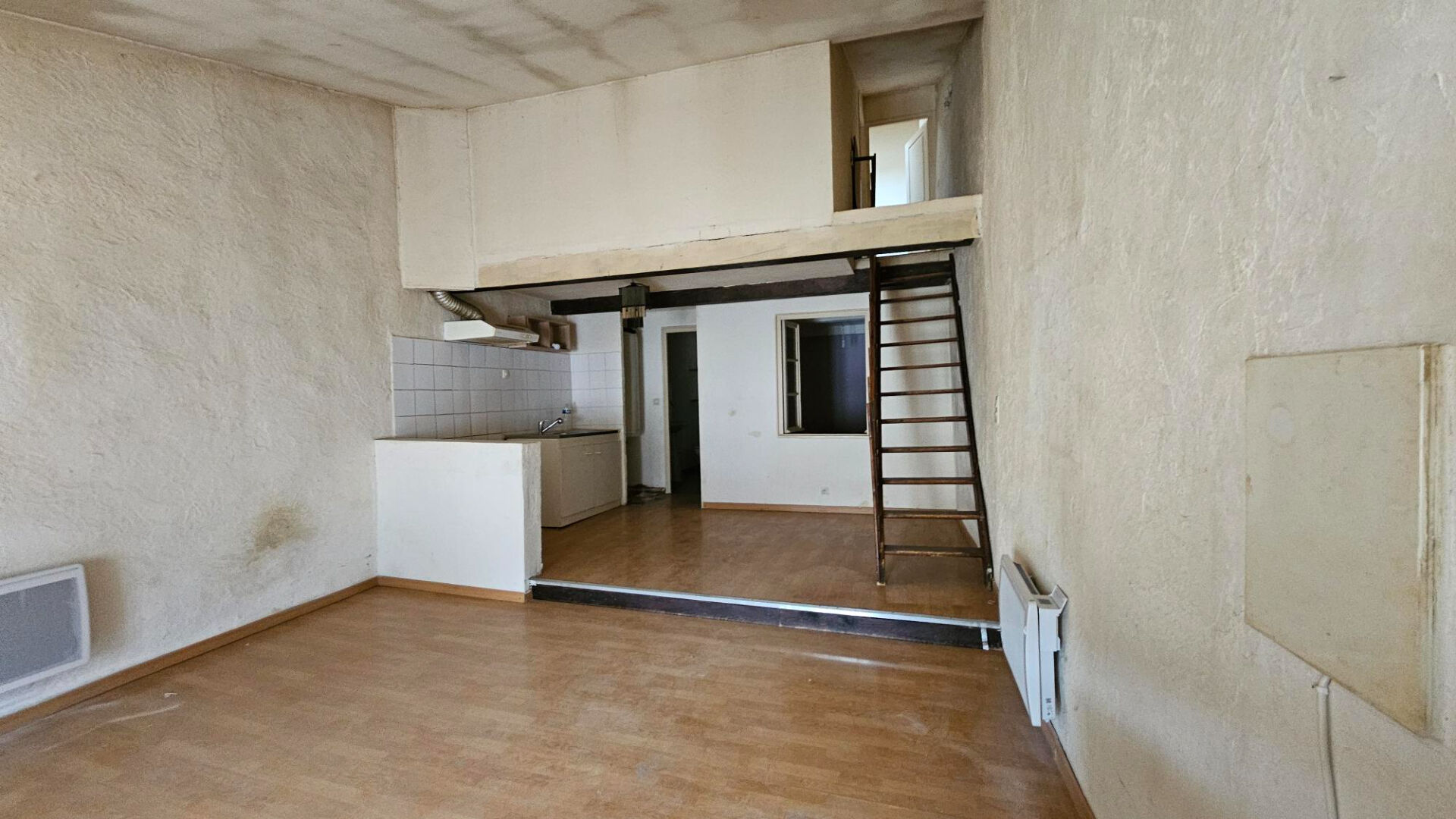 Au 1er étage, il s'agit d'un studio de 26.15m² avec salle d'eau et cuisine ouverte.