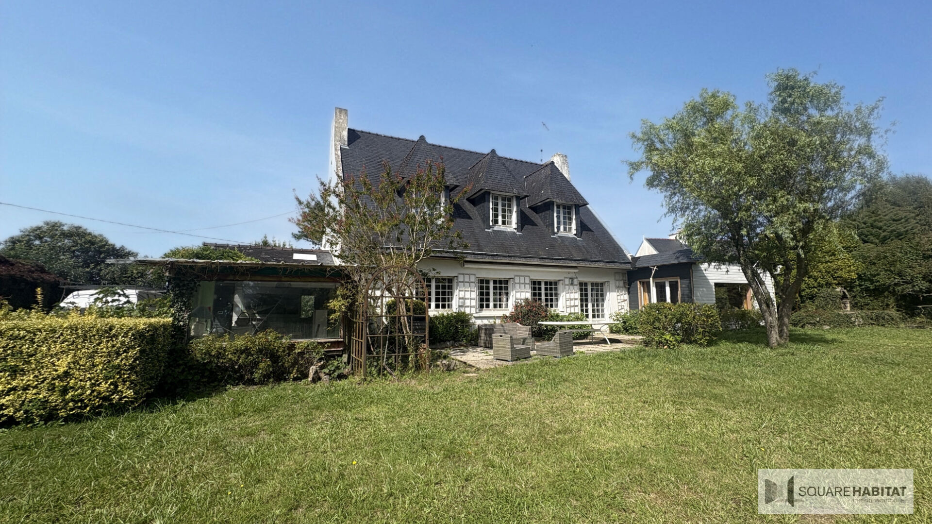 FOUESNANT, côté Mousterlin, dans un environnement très agréable en fond d'impasse, et à seulement 5 minutes à vélo de la plage, cette maison des années 2000 a été construite sur un très beau terrain de presque 2000m².