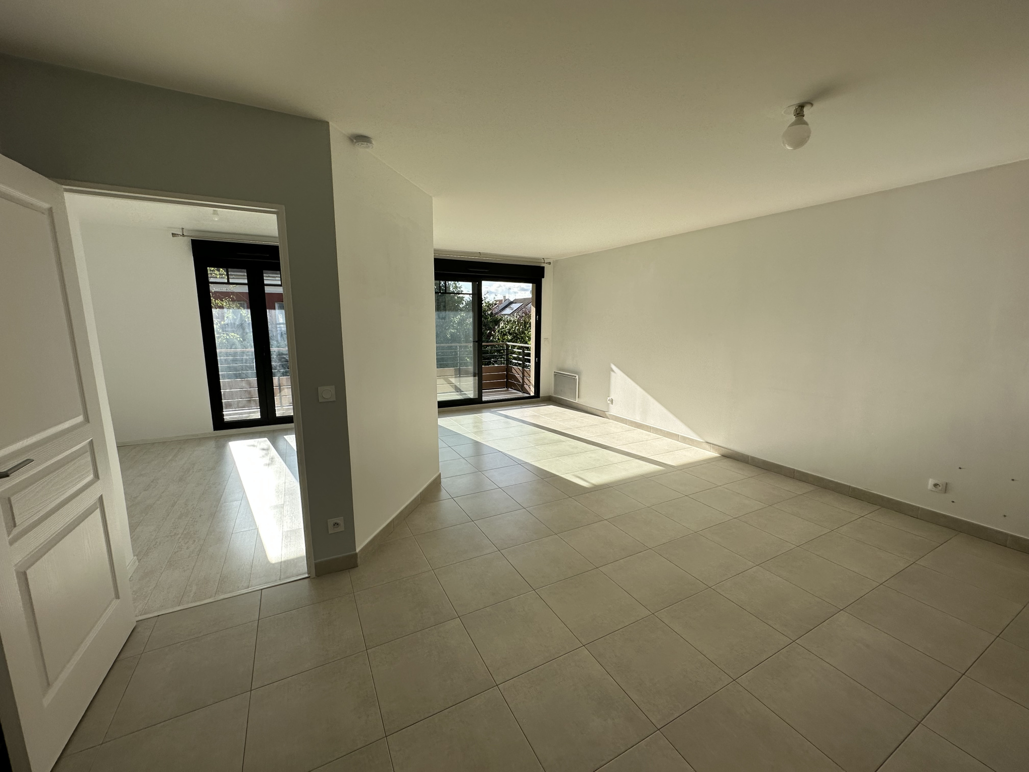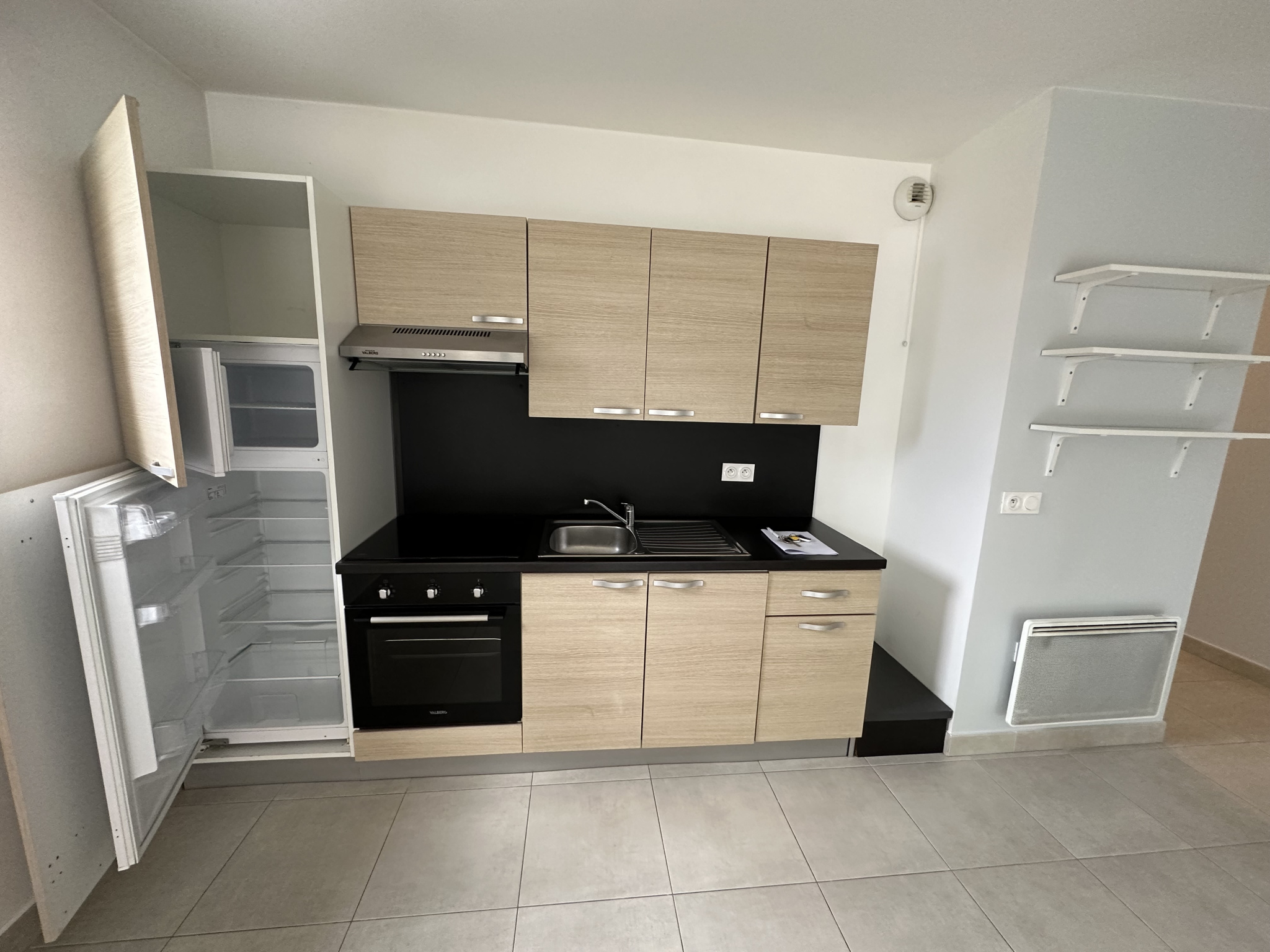 dans Résidence sécurisée de standing : Grande Entrée avec placard, cuisine ouverte aménagée, séjour donnant sur terrasse, chambre avec terrasse, salle d'eau avec wc.