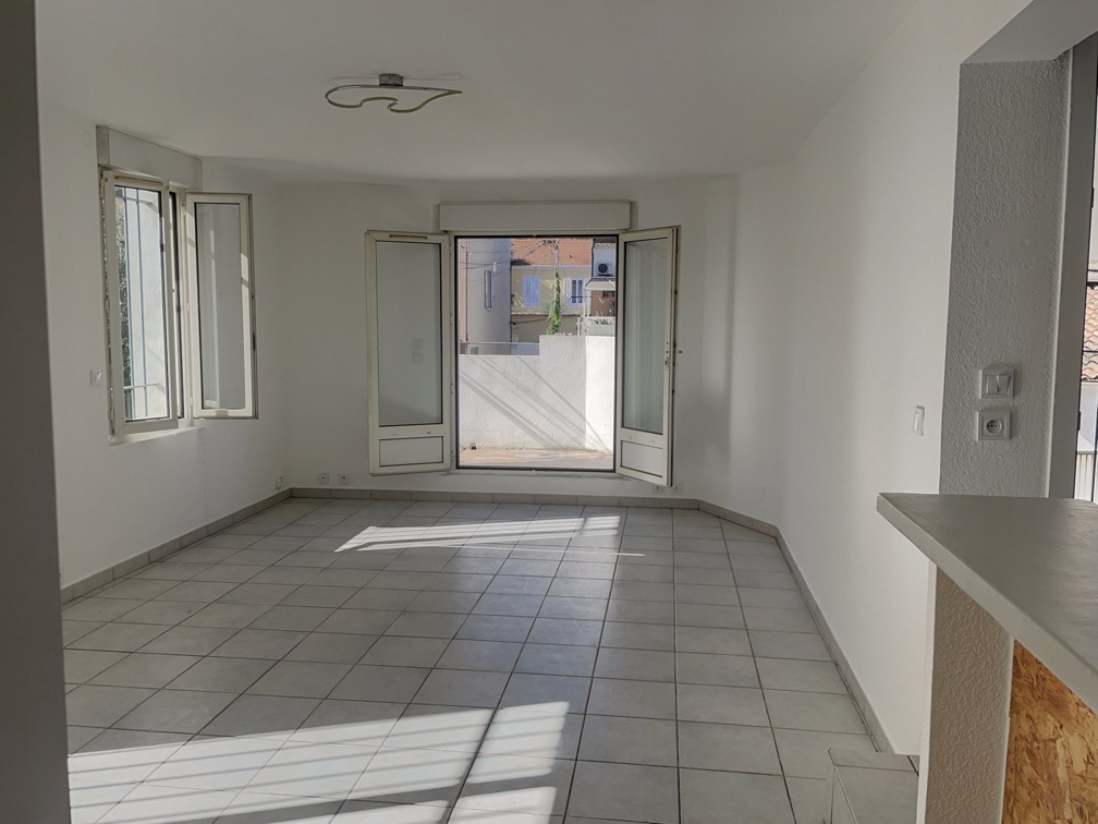 TOULON AGUILLON . T 3 . traversant .parfait état . entée sur sejour . 2 chambres . cuisine avec loggia . salle d'eau . climatisation . place de parking privative