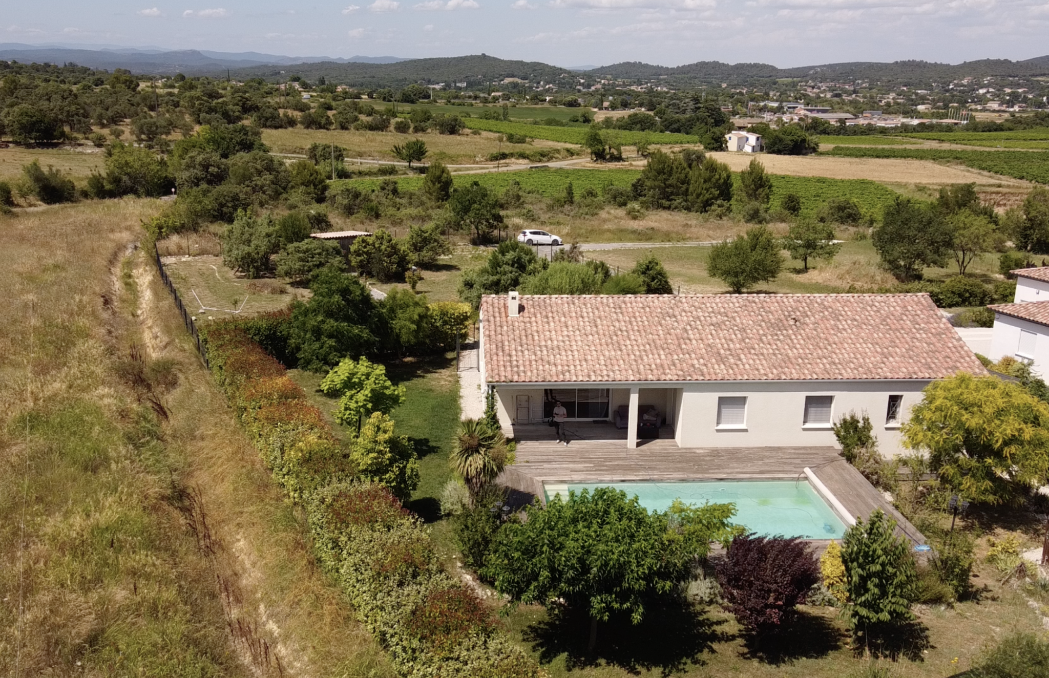 Demeures du Midi vous propose à la vente une maison de plain-pied, construite en 2014, avec piscine et grand garage, située au fond d'une impasse, à l'abri de tout vis-à-vis.