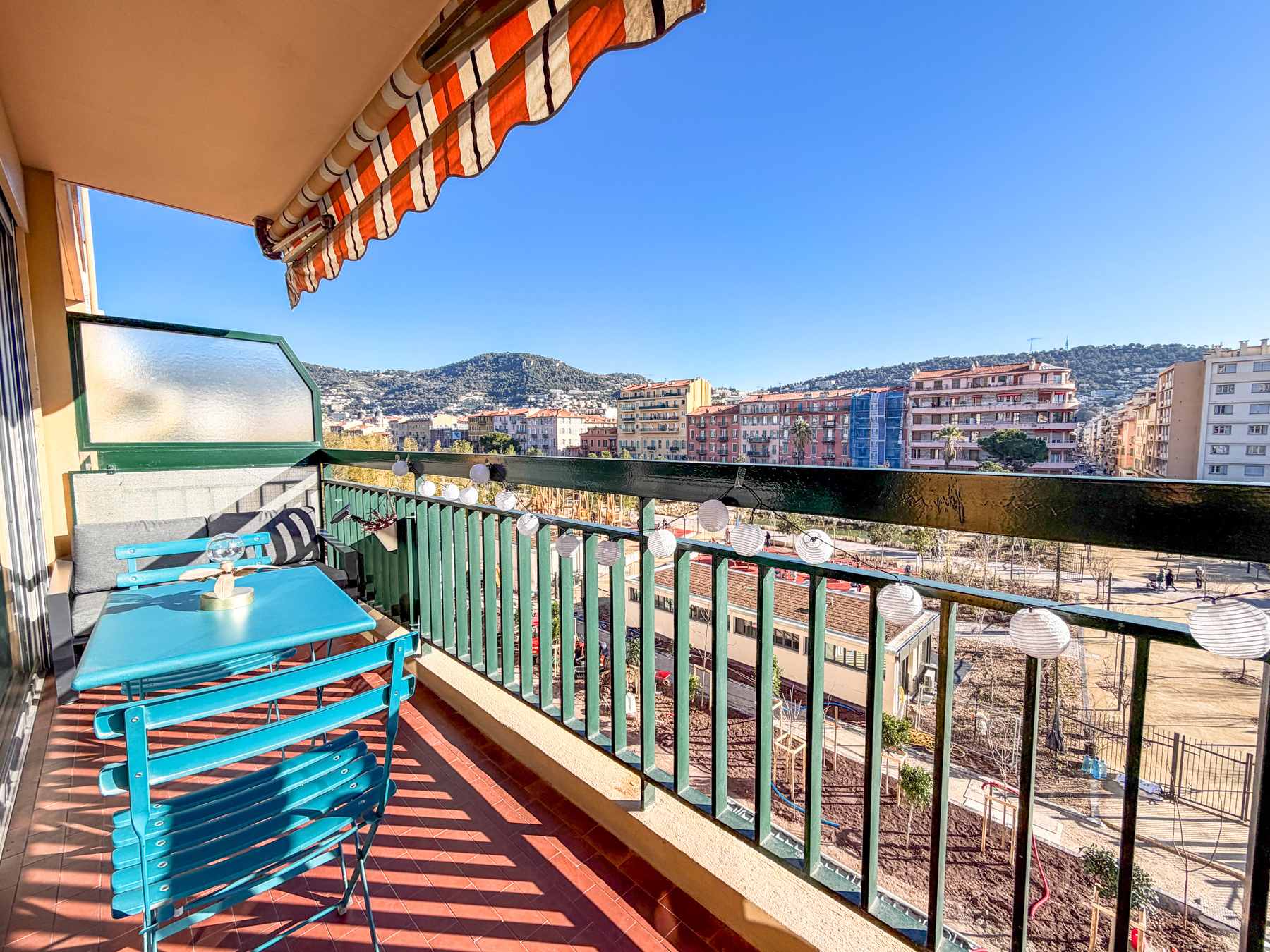EXCLUSIVITÉ : Dans un immeuble au calme, en retrait du Boulevard Jean Behra, appartement 2 pièces de 50 m2 au dernier étage, en parfait état. Traversant Est-Ouest, il dispose d'un grand balcon/terrasse de 9 m2, de double vitrage et de clim. Le séjour et l...