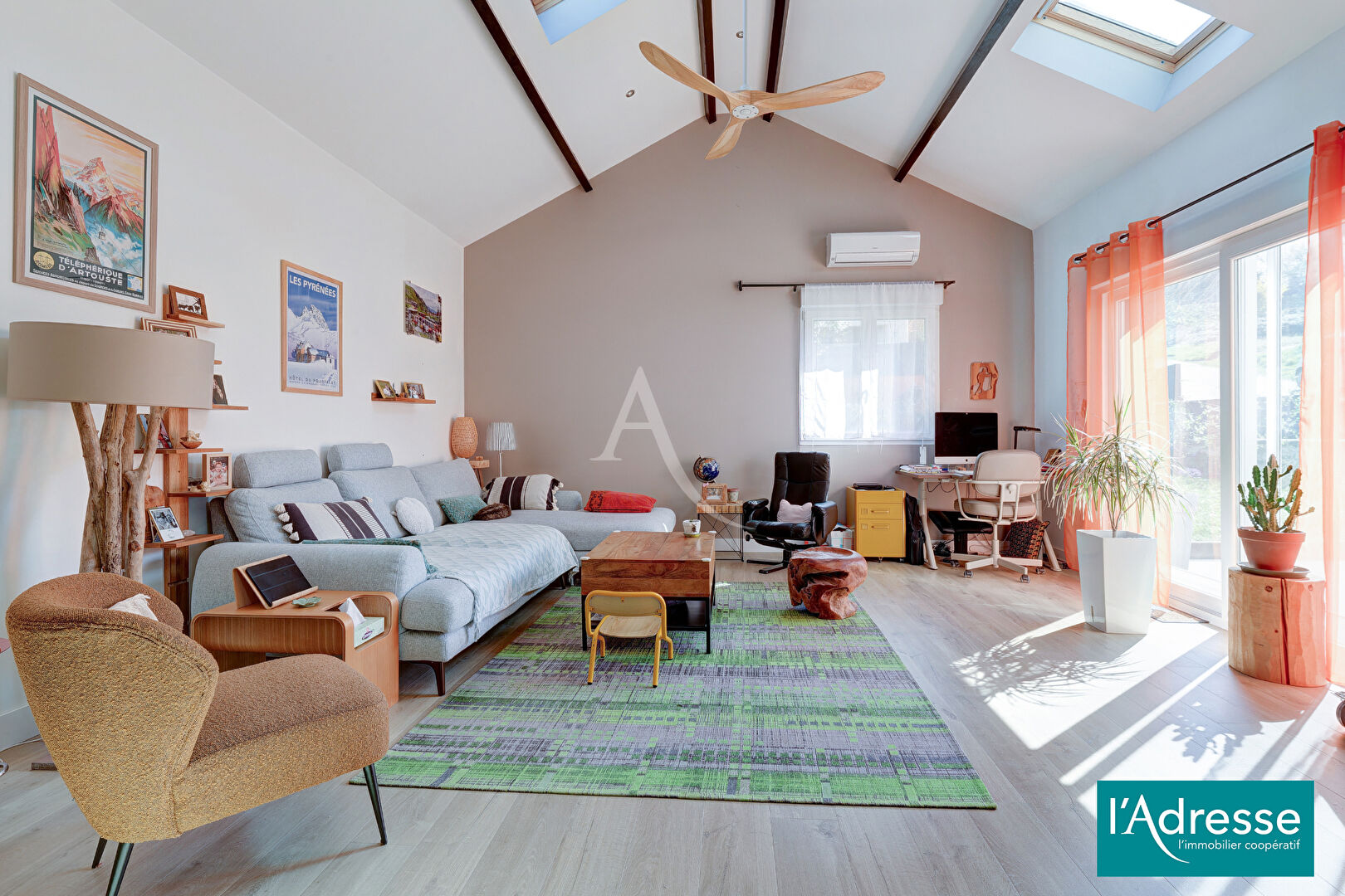 Au rez-de-chaussée, un grand espace vie avec cuisine ouverte aménagée et équipée. WC au RDC.