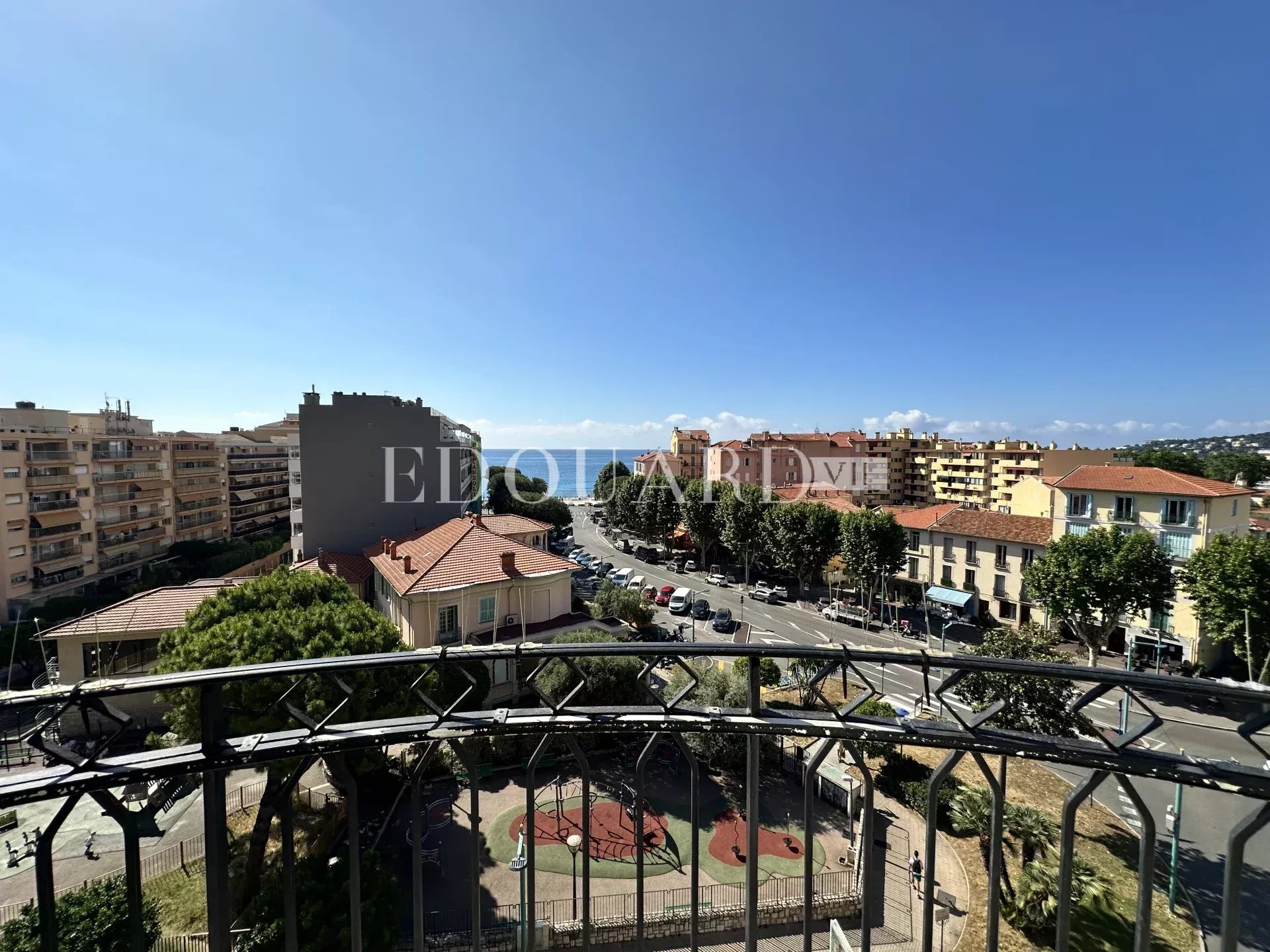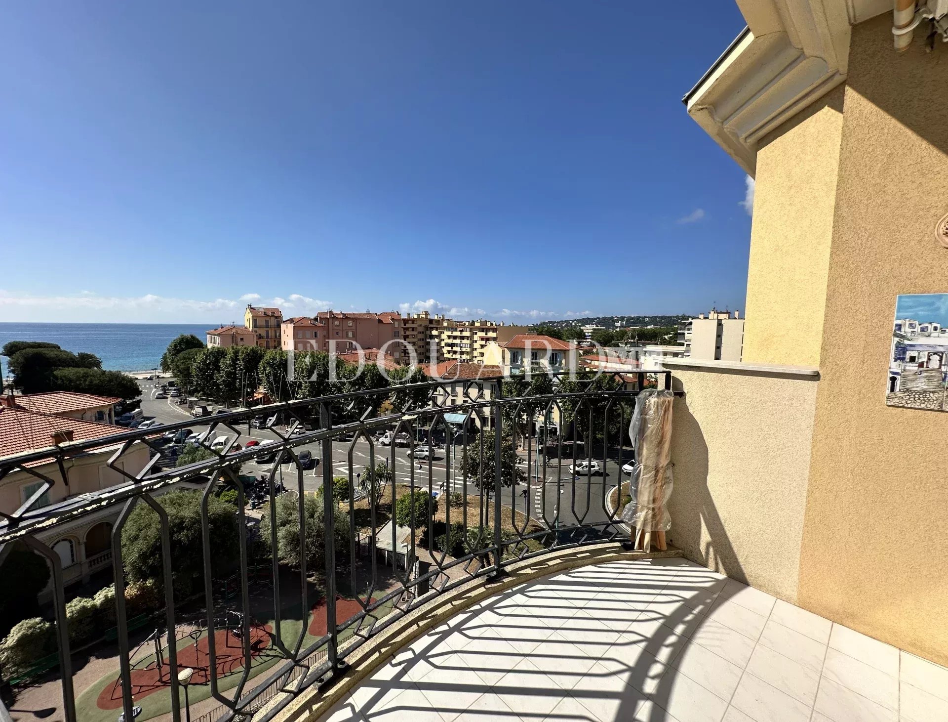 Deux pièces à vendre en plein centre de Menton. Au cinquième étage d'un prestigieux immeuble avec conciergerie et vidéosurveillance, appartement de 42 m² en bon état avec alarme, porte blindée, double vitrage et volets roulants électriques.