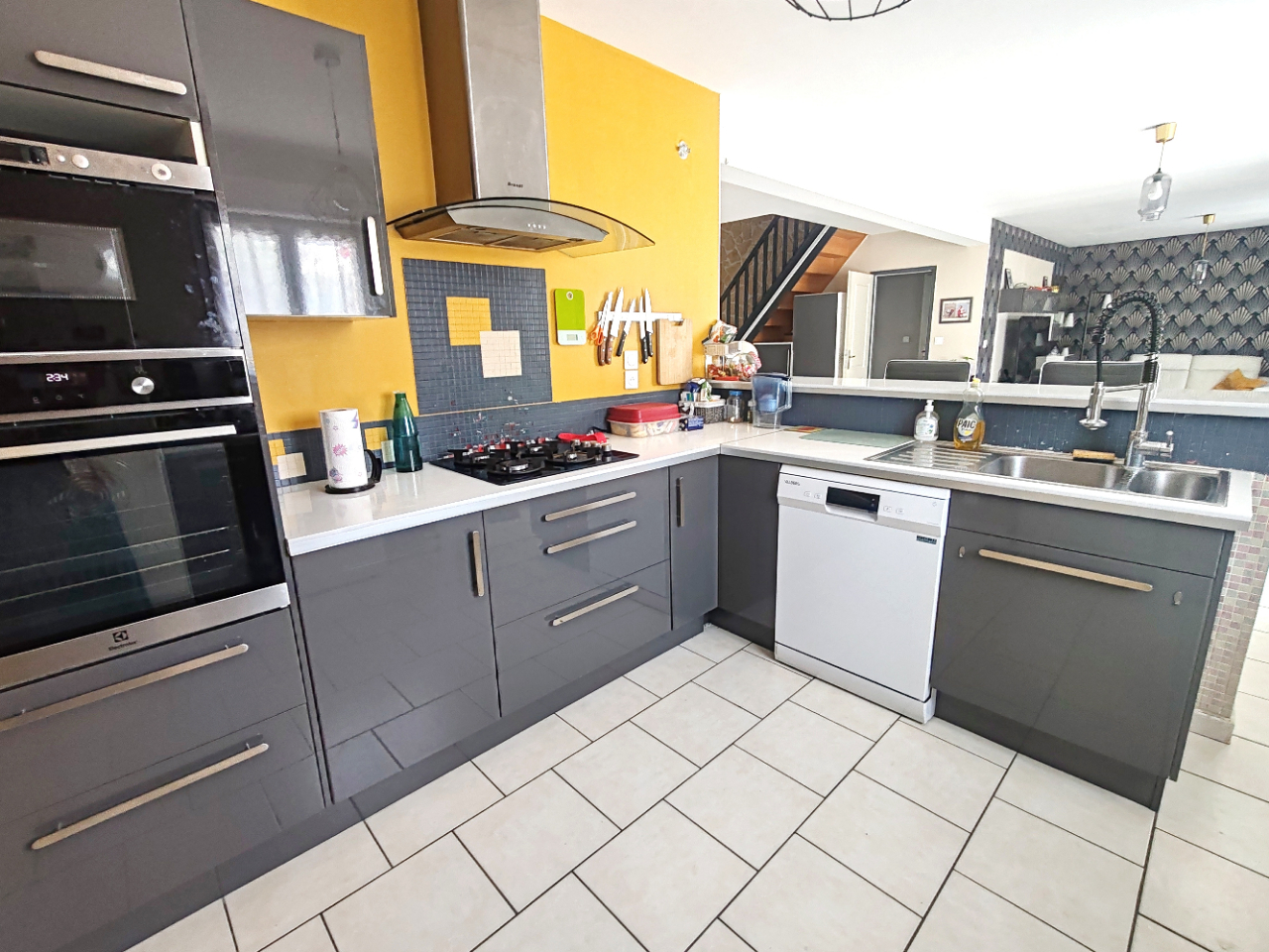 Maison sur sous-sol composée d'une entrée, séjour avec cheminée, cuisine aménagée, 4 chambres, 2 salles de bains, salle d'eau, 3 wc