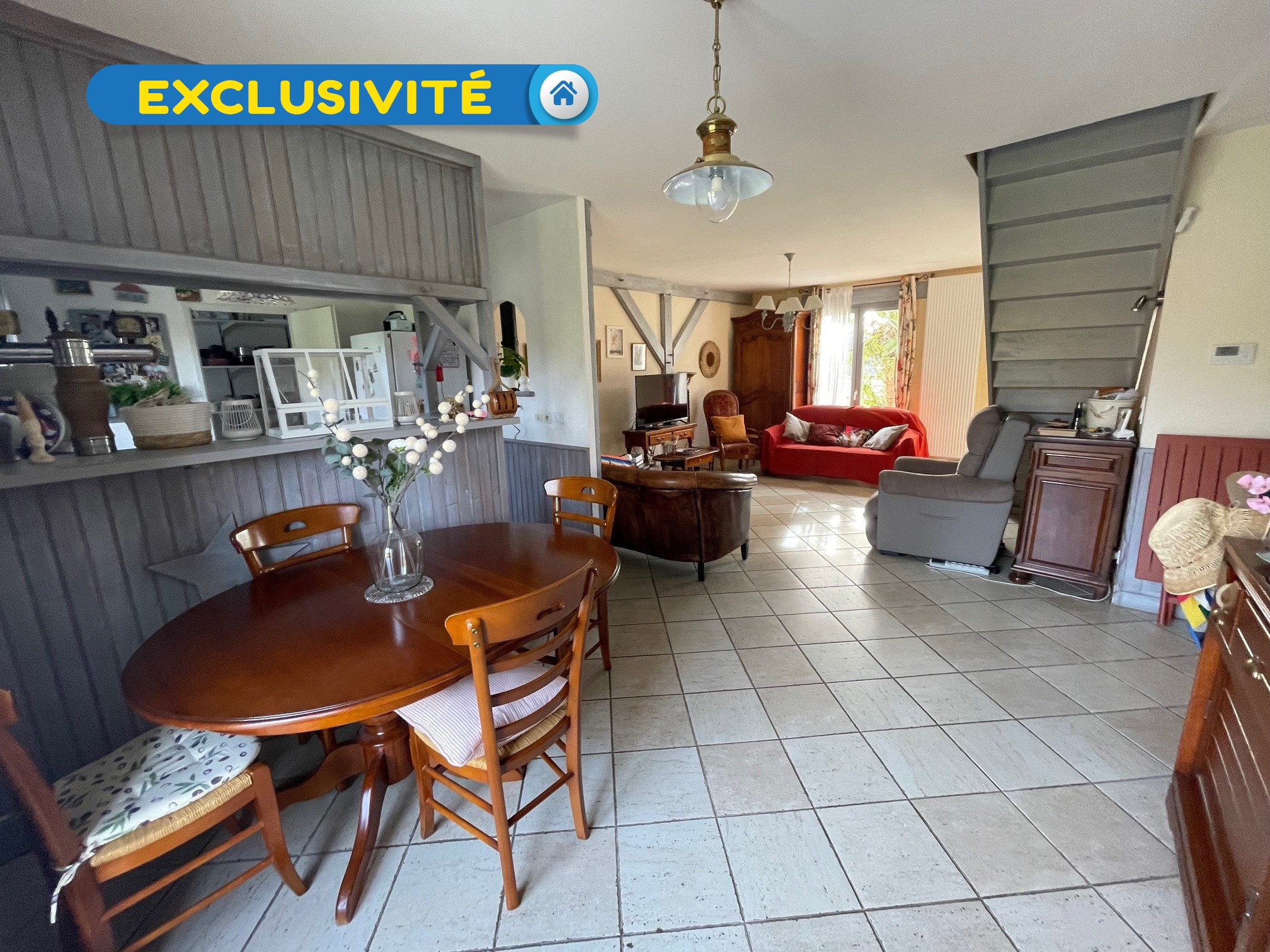 EXCLUSIVITE ! Au calme, maison de 124 m2 environ sur sous-sol total comprenant au rez-de-chaussée: entrée, grand séjour-salon avec cheminée et cuisine ouverte aménagée et équipée, couloir avec rangement, WC, salle de bains, deux chambres (dont une avec placard...