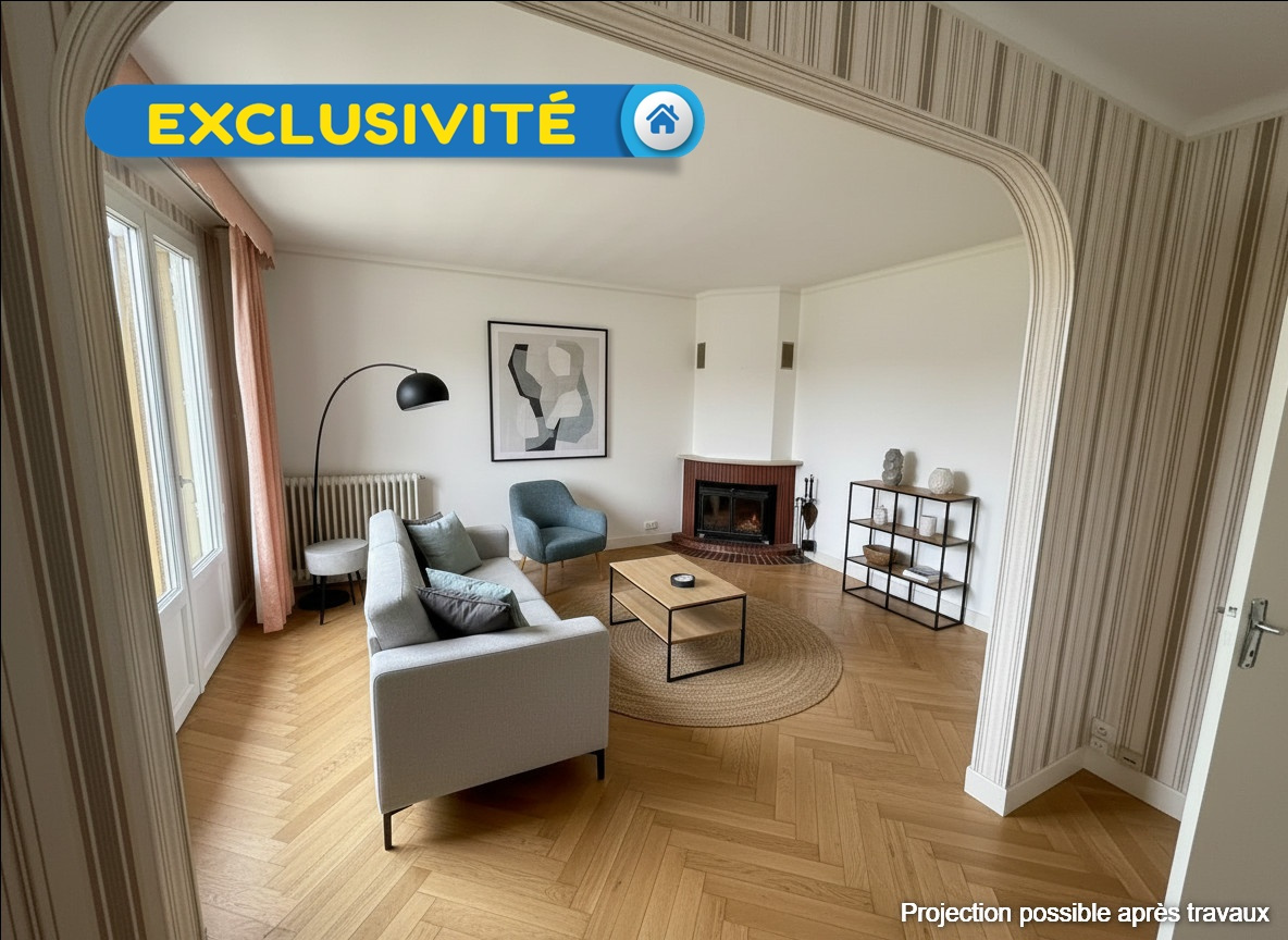 EXCLUSIVITE ! Proche des commerces et des écoles, maison sur sous-sol total parfaitement entretenue comprenant au rez-de-chaussée: entrée avec placard, chambre, buanderie avec WC, chaufferie avec un point d'eau, cave, garages pour 3 voitures pouvant recev...