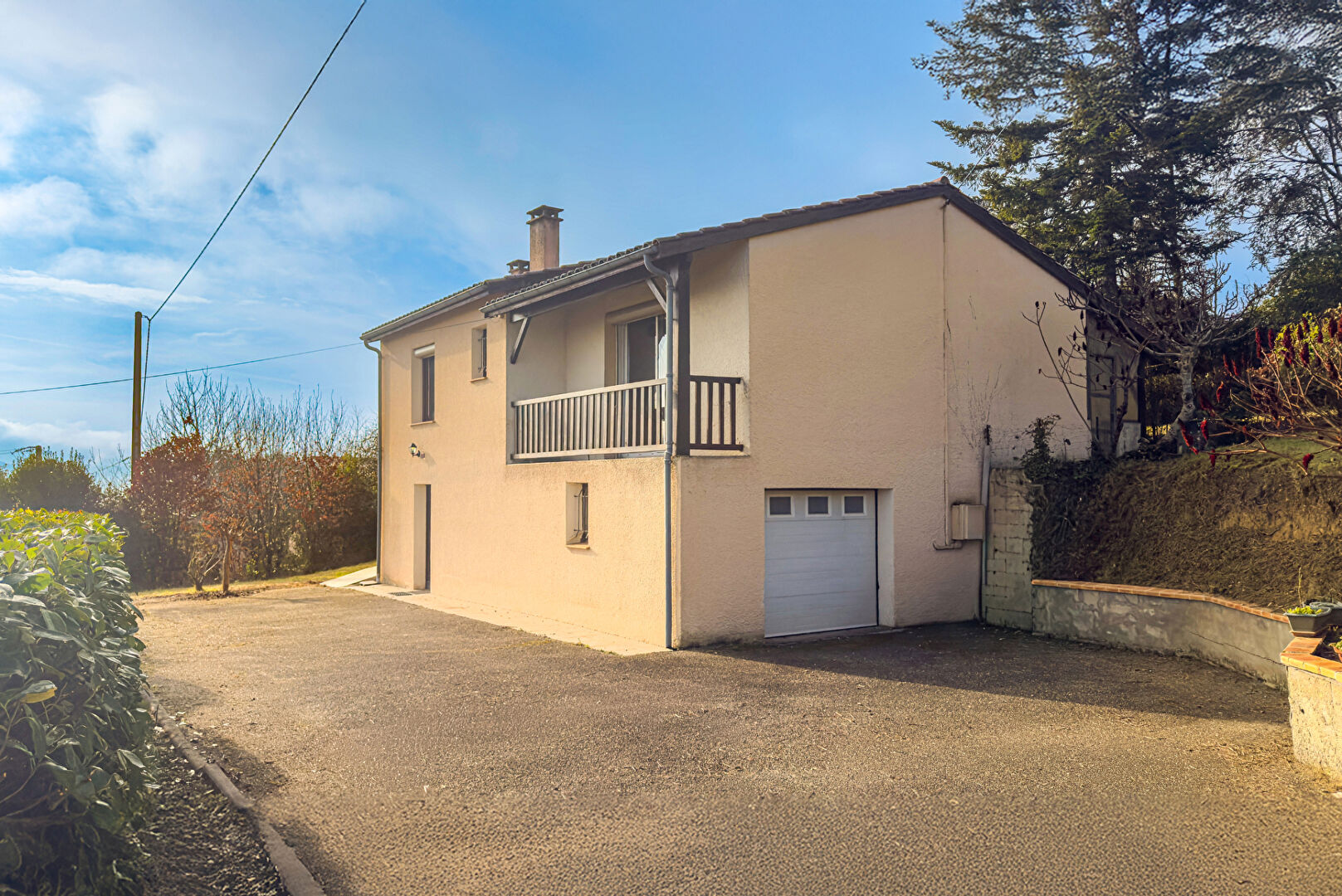 Cette maison semi enterrée est située dans un environnement calme, tout en restant à seulement 1à 2 min des 1ères commodités.
