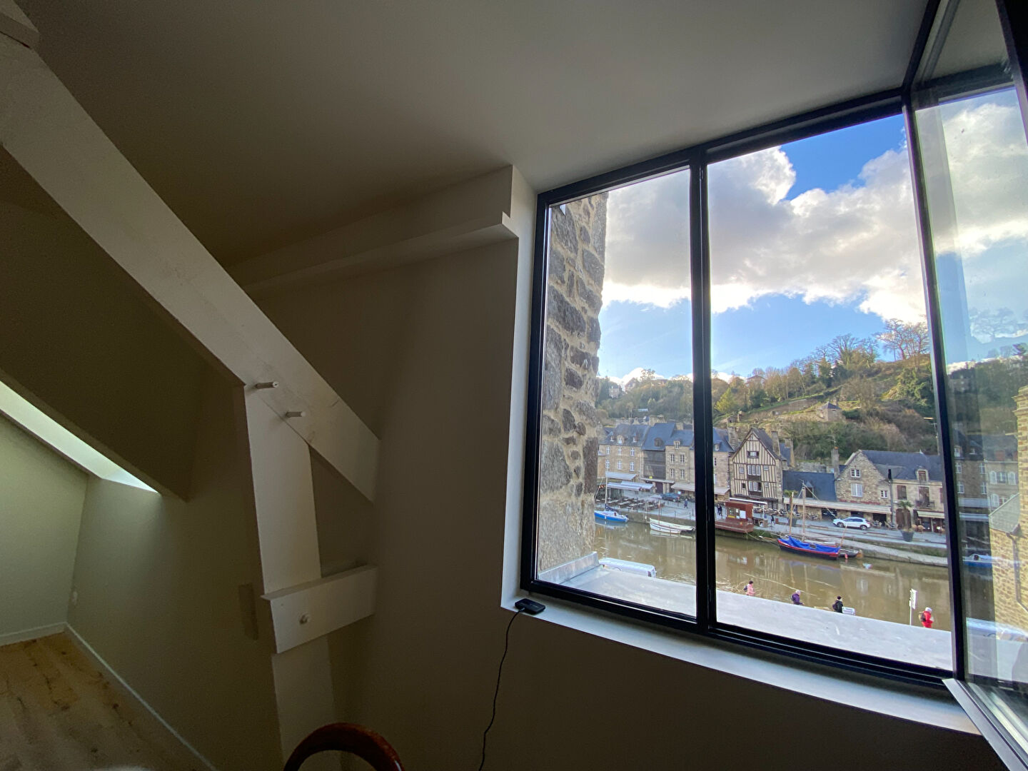 Charme de l'ancien et modernité, elle se compose d'une grande pièce à vivre lumineuse avec coin cuisine aménagée et une jolie Vue sur la Rance.