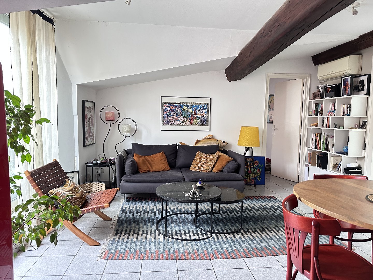 Sète, dans le coeur de ville rue pietonne, au 3ème et dernier étage d'un bel immeuble ancien, appartement T1 mansardé composé d'une pièce sejour avec cuisine, une petite pièce pouvant faire office de chambre ou bureau et une salle d'eau avec WC....