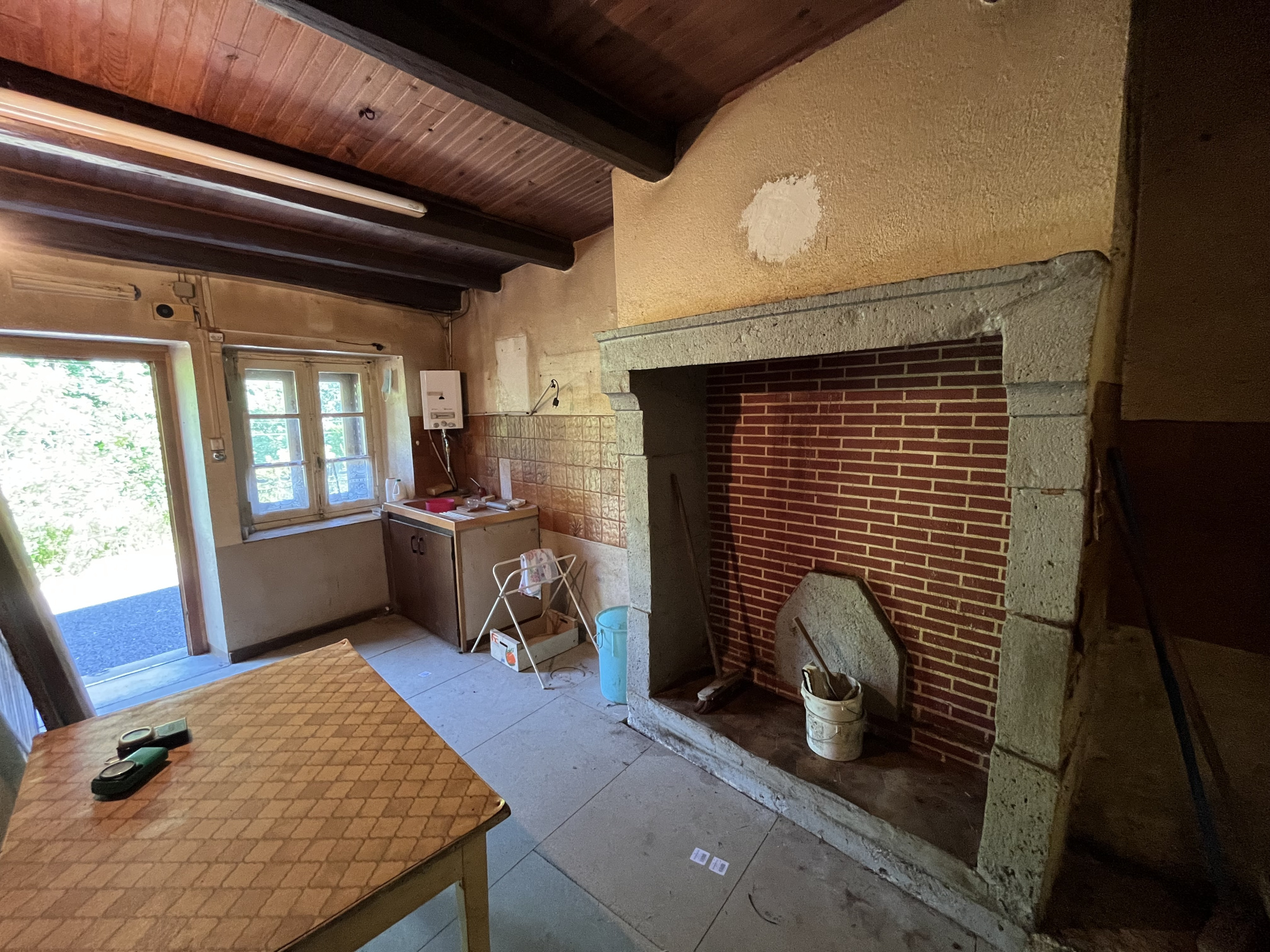 en l'état, au RDC ,elle offre une cuisine, une cave, un salon vouté,