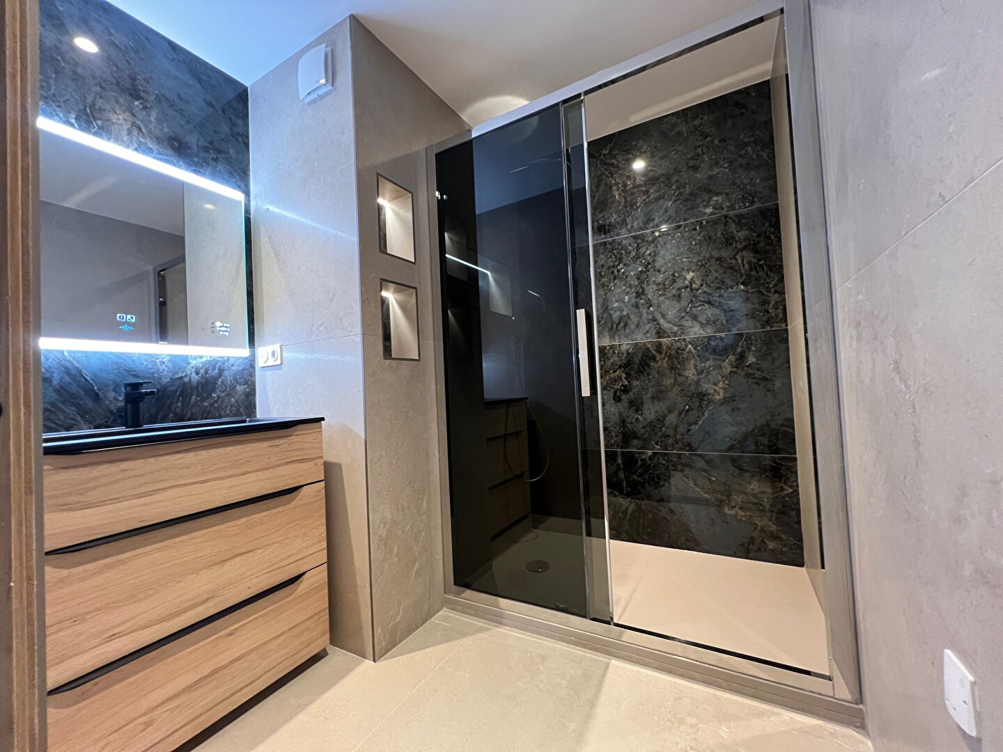Appartement 3 pièces entièrement rénové comprenant un séjour sur terrasse , une cuisine ouverte , une salle d'eau , un wc séparé , et 2 chambres avec placard , équipée d'une climatisation.
