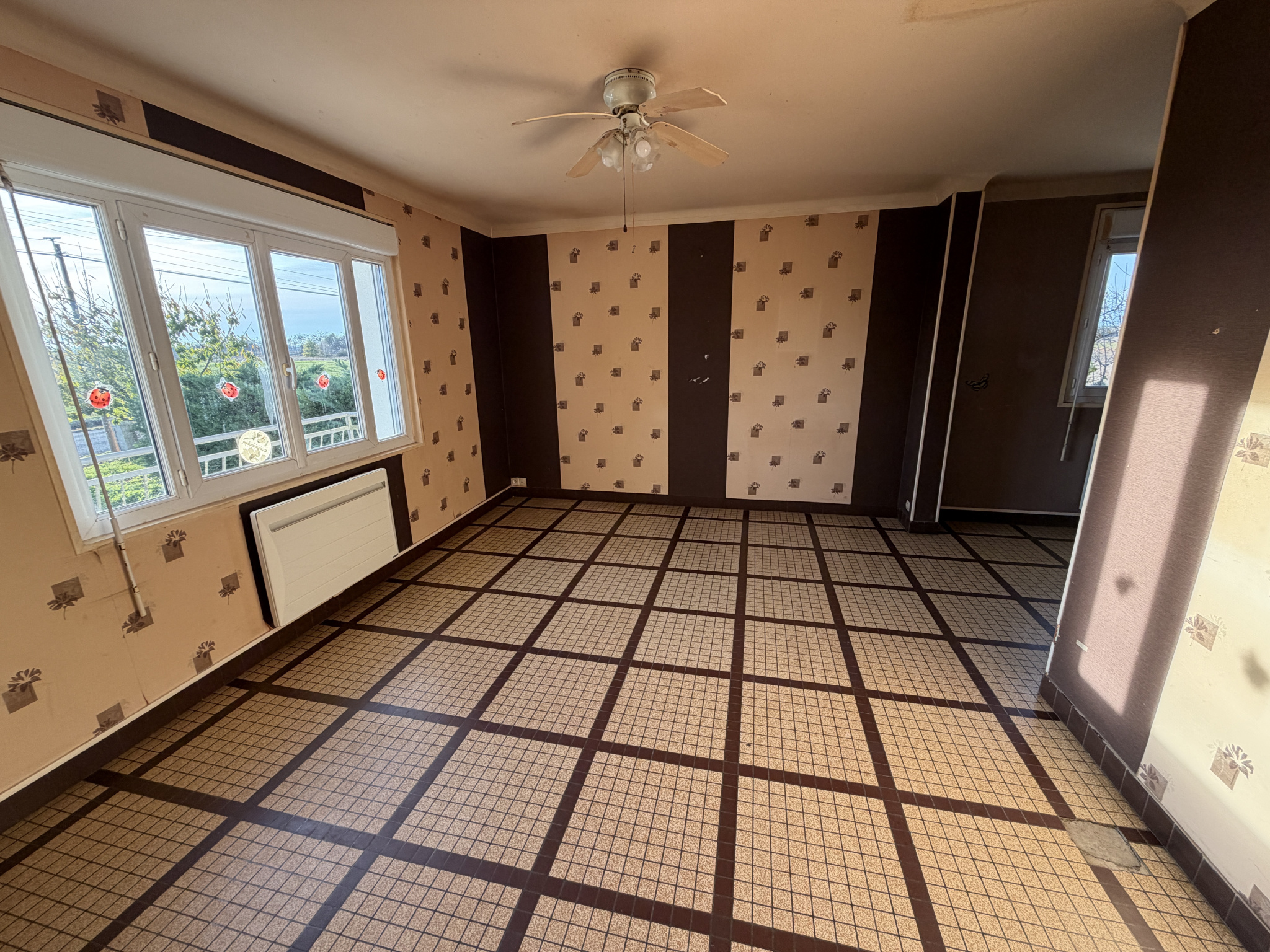 Maison à rénover offrant de beaux volumes. Elle comprend en rez-de-chaussée une entrée, salon/séjour, cuisine et WC ; à l'étage un palier desservant 4 chambres, une salle de bains, un WC et au-dessus un grenier aménageable de 60 m2.
