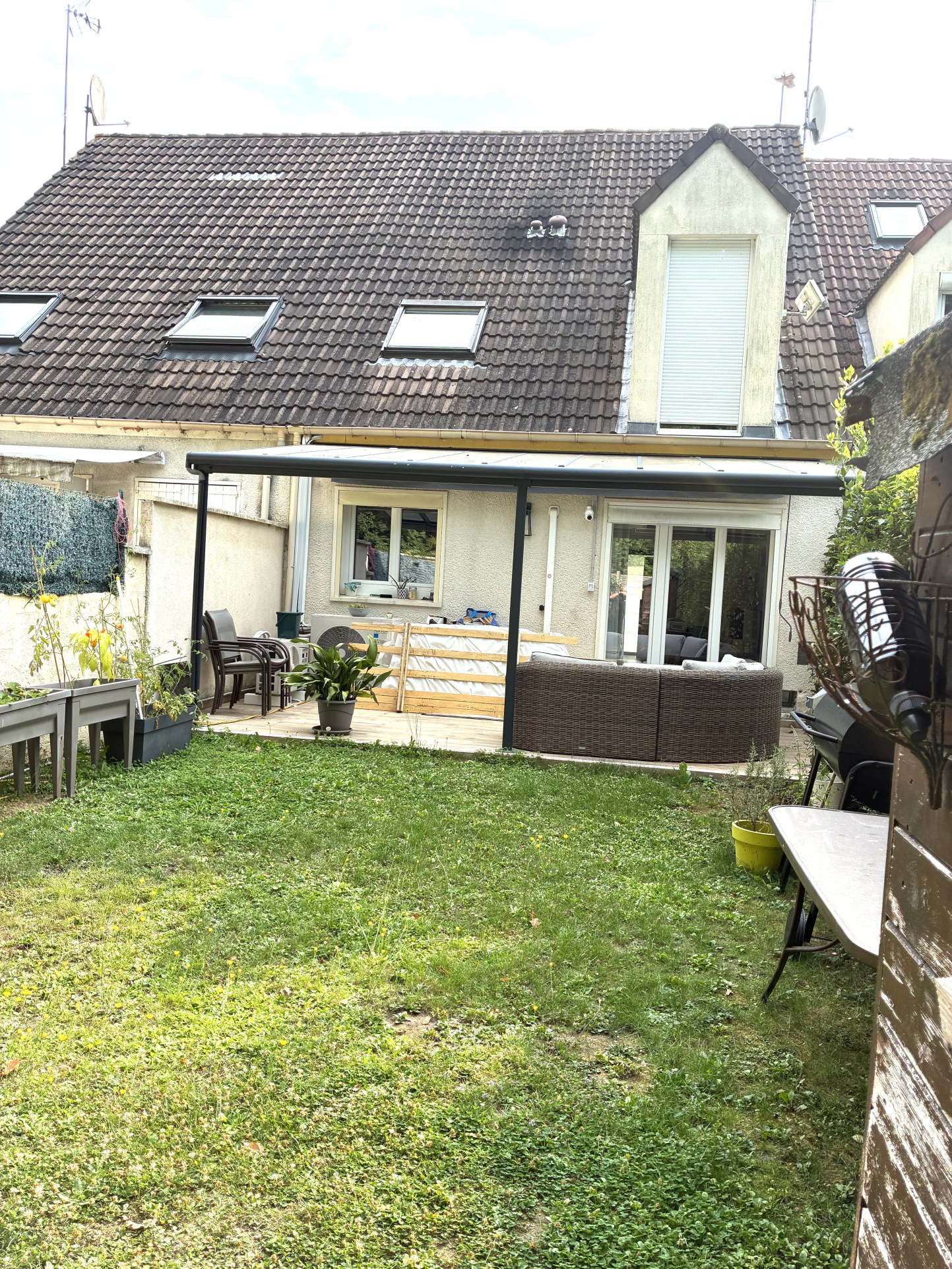 Pavillon mitoyen de 98 m2 en parfait état, offrant 4 chambres dont une grande aménagée dans les combles. Cuisine équipée avec verrière métal ouverte sur séjour lumineux. À l'étage : 3 chambres, salle de bains avec baignoire et douche. 2 WC au total. Garag...