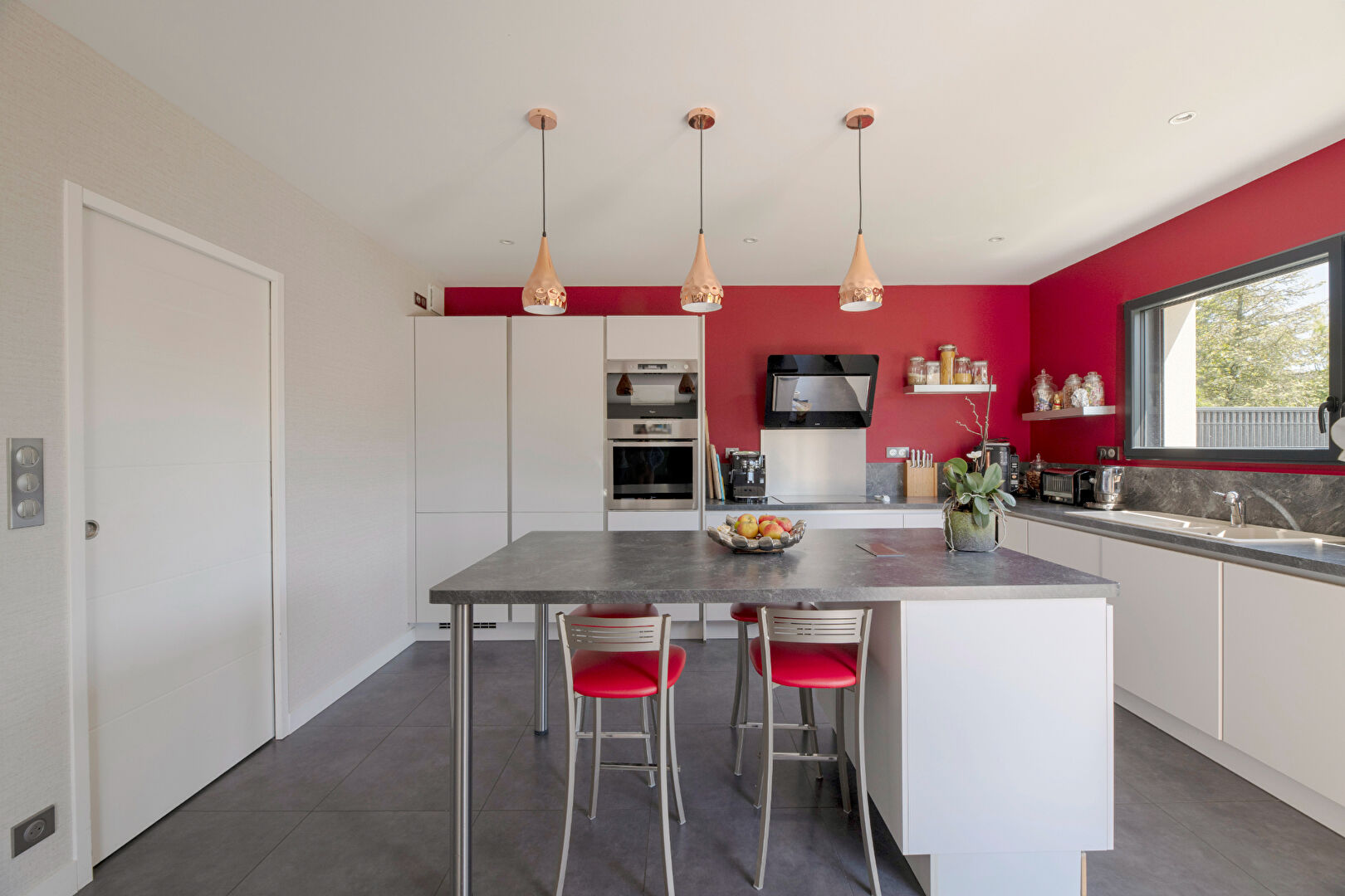 Superbe maison contemporaine de 140 m² située en impasse dans le centre-ville de Laillé, commune de Rennes métropole, avec ses commerces et ses écoles accessibles à pied.