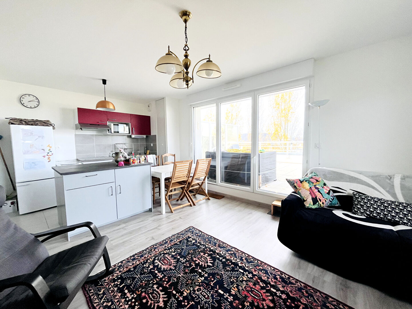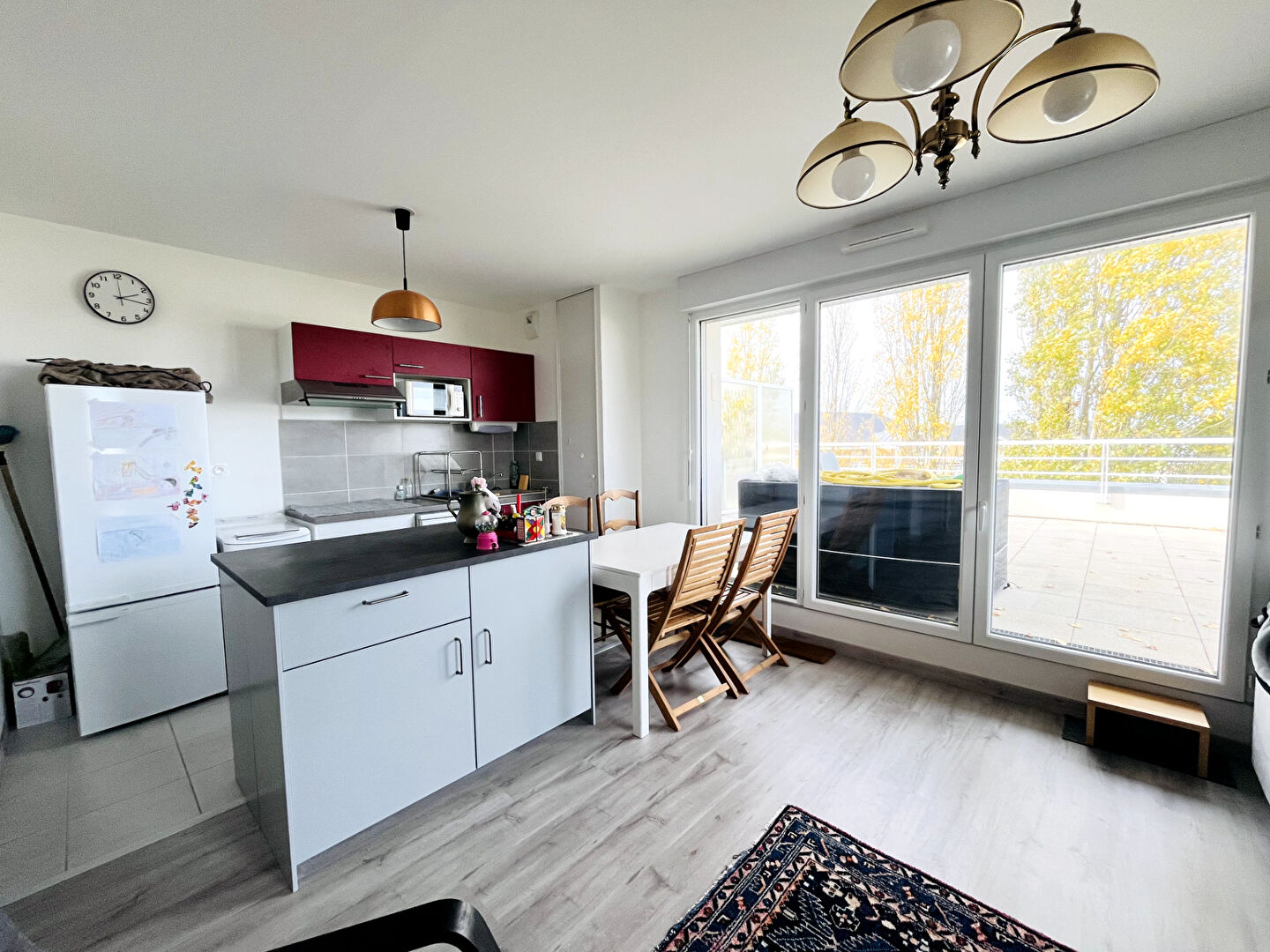 Au 1° étage de la Résidence NORMANDY HOME appartement 3 pièces comprenant : Un salon-séjour avec cuisine am...