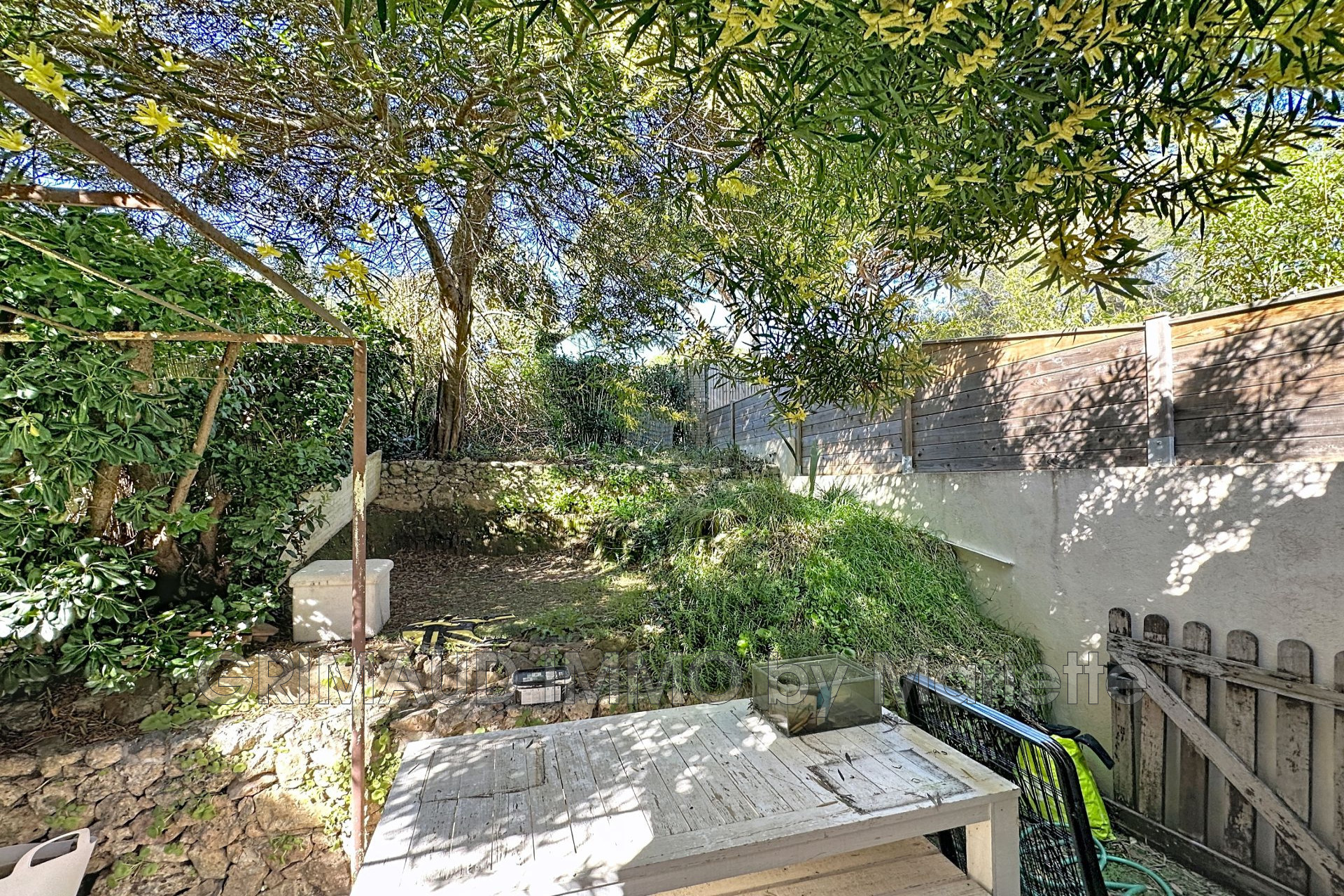 Maison jumelée d'un côté, a pied du village de Grimaud, avec bassin (4x2) et deux belles terrasses se composant : entrée, cuisine américaine équipée, salon avec cheminée/salle à manger donnant sur la terrasse avec bassin. En étage inférieur, deux chambres...